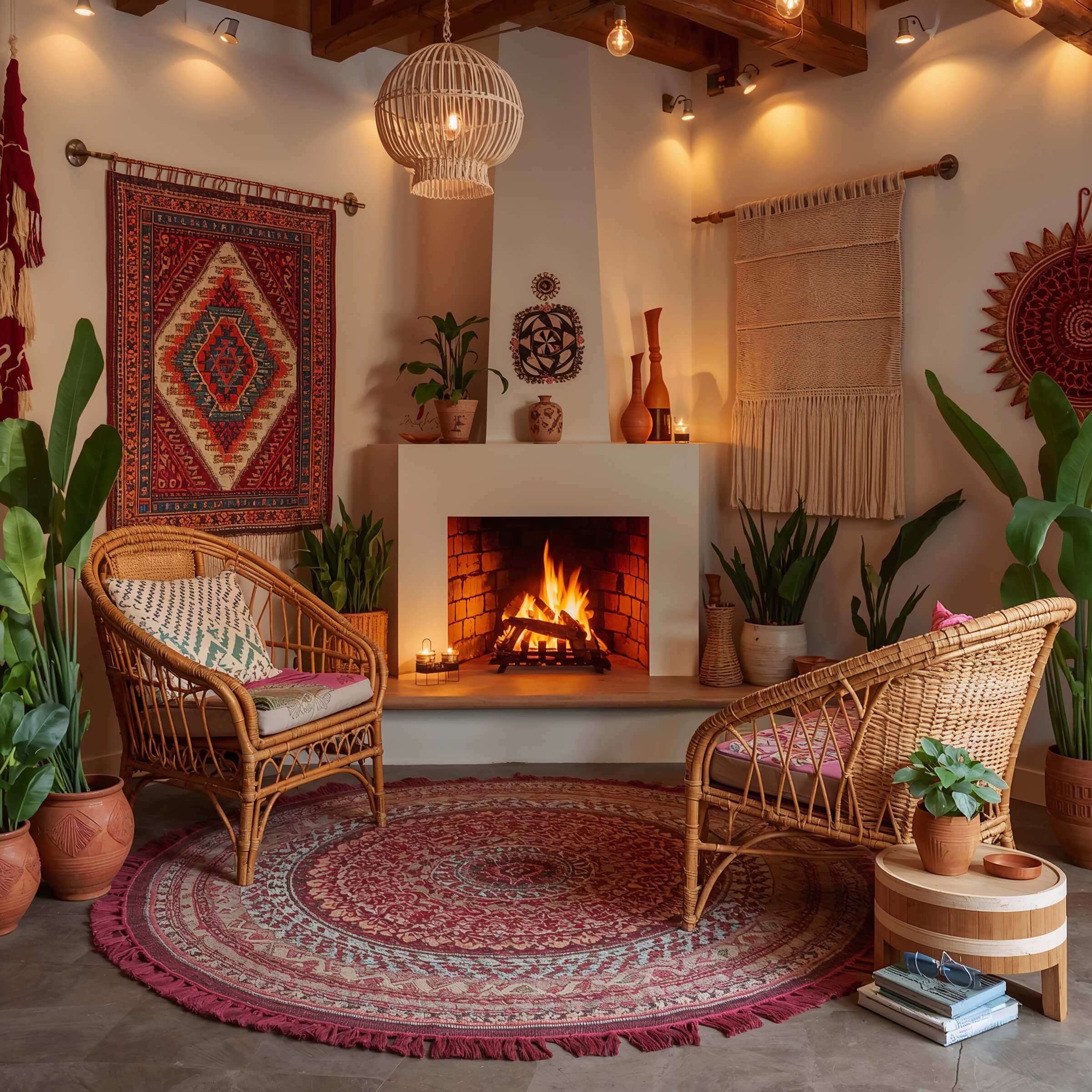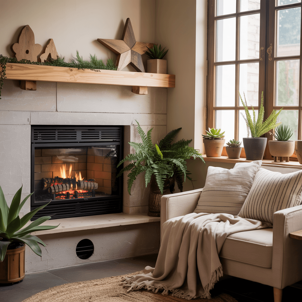 The best boho corner fireplace decor feels curated, not chaotic.