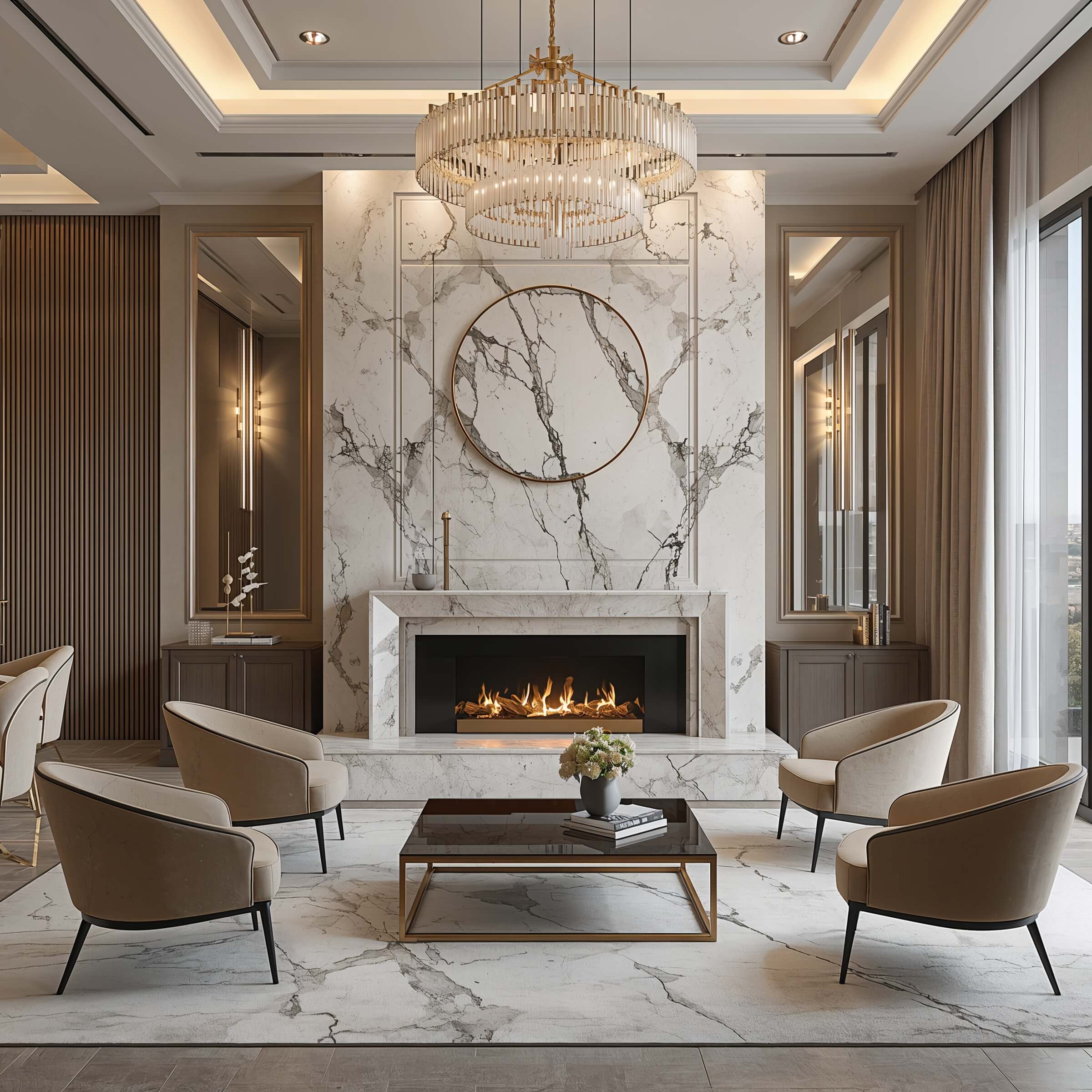 10. Luxury Living Room Corner Fireplace Setup