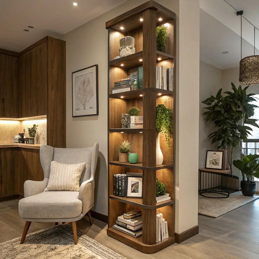 Built-in corner shelves with integrated lighting are the Rolls Royce of corner storage. They scream “I have my life together” even if you absolutely don’t. I had these installed in my home office corner, and now I feel like I work in a fancy library even though I’m just answering emails in my pajamas.