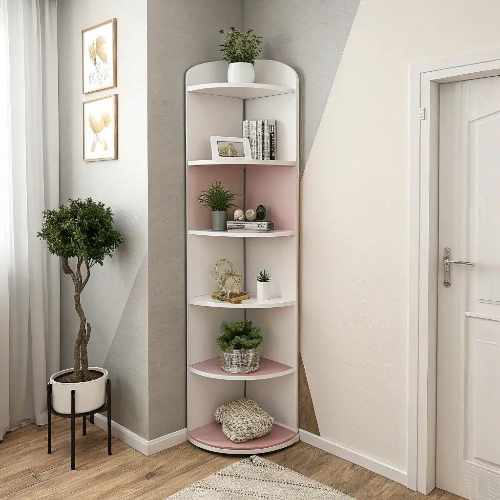 Curved corner shelves blew my mind when I first discovered them. Instead of harsh 90-degree angles, you get these gorgeous flowing lines that make corners feel softer and more inviting. They’re like the yoga instructors of shelving – flexible, graceful, and somehow making everything feel more zen.