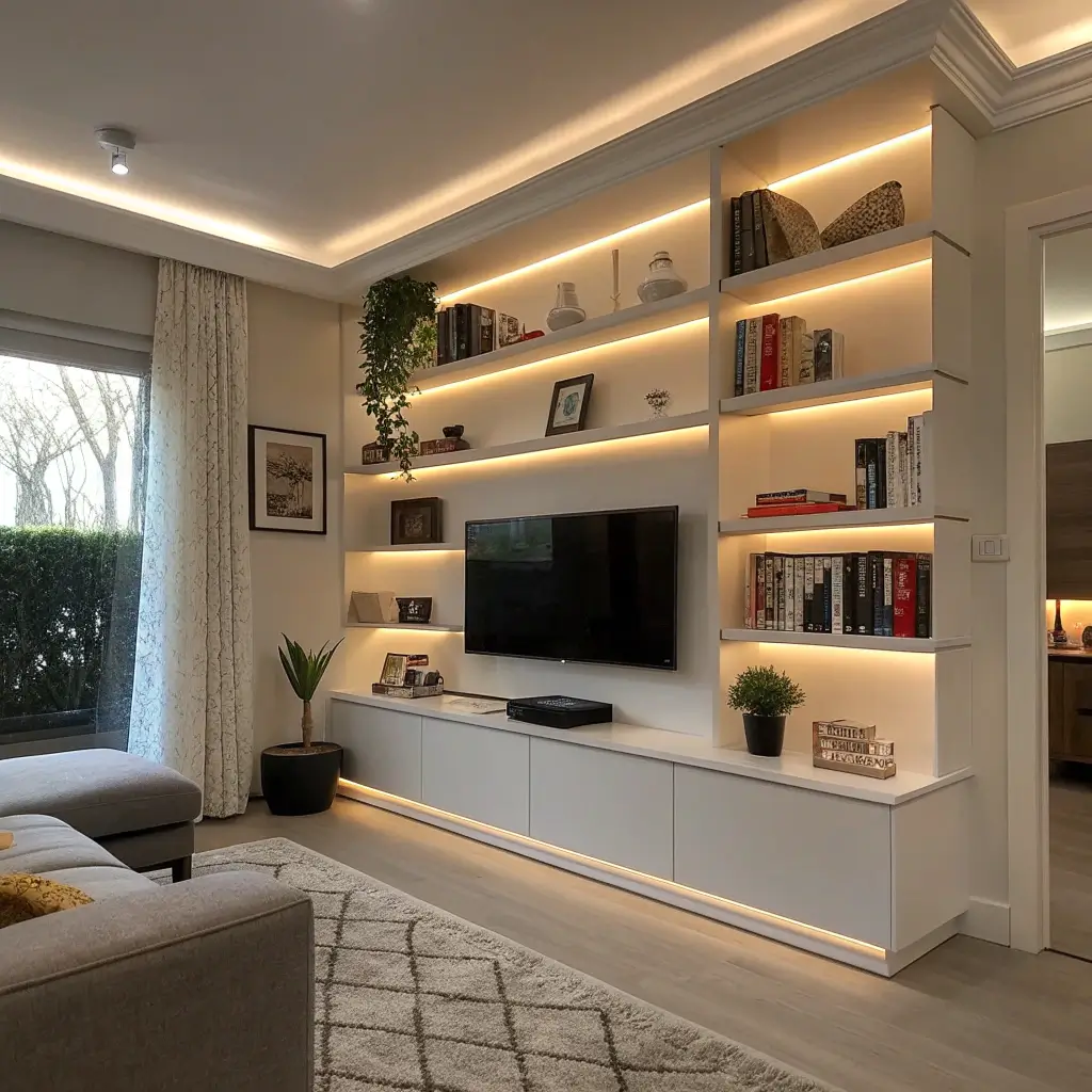Built-In Corner Shelves with Lighting: The Illuminated Excellence