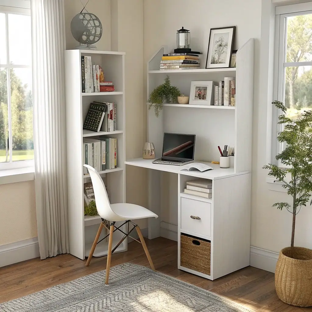 I replaced my bulky desk with a corner shelf-desk combo, and suddenly my room felt twice as big. The desk portion tucks into the corner with shelves rising above it, creating vertical storage for all my office supplies, books, and the growing collection of coffee mugs that seem to multiply when I’m not looking.