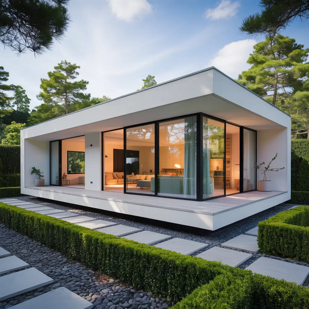 Modern minimalist cottages strip away Victorian fussiness while keeping the cozy scale and thoughtful details that make cottages special. Think simple gabled roofs instead of complex dormers, large unadorned windows instead of tiny paned ones, and smooth stucco or board-and-batten siding instead of ornate shingles.