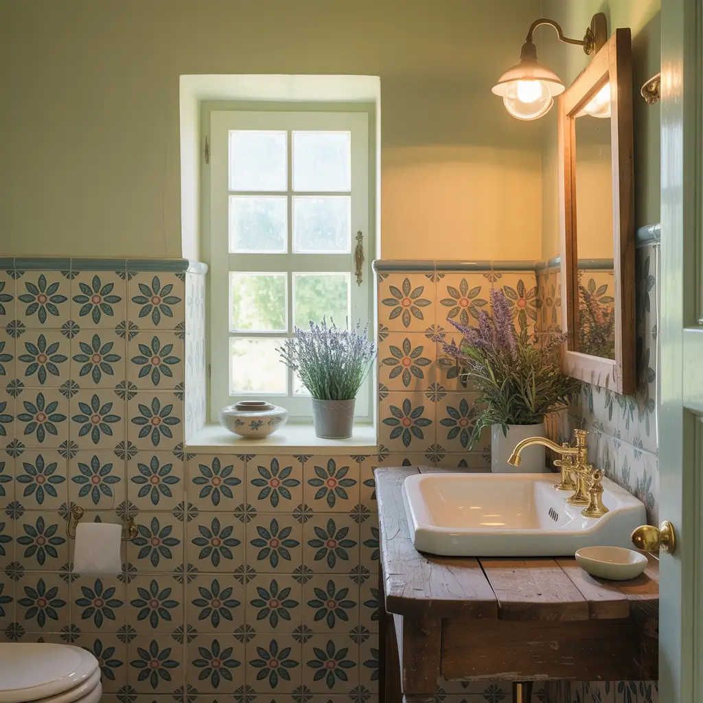 Tile patterns bring personality to country cottage bathrooms, offering durable decorative elements that maintain beauty for decades.