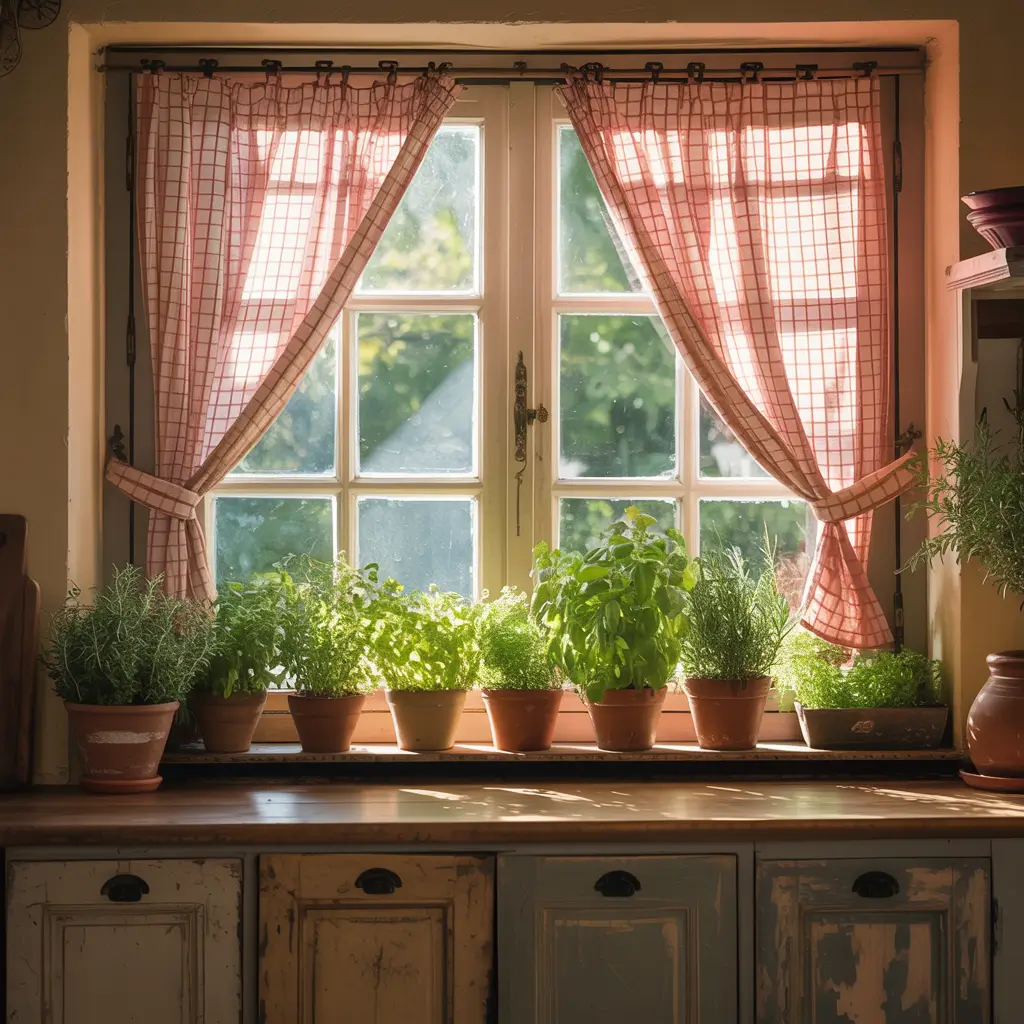 Tie-up curtains with classic country checks offer adjustable coverage with built-in charm. You control exactly how much window shows, and the tied-up fabric creates a soft, relaxed valance effect.