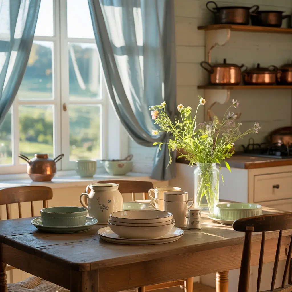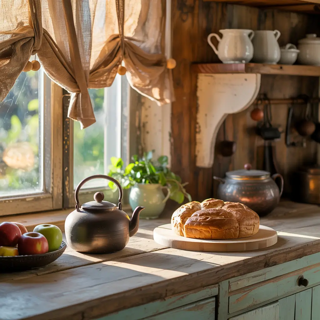 I found mine at an estate sale – faded blue flowers on cream cotton that look like they’ve been loved for decades. They make my modern appliances look intentionally eclectic instead of mismatched. Sometimes the best country style comes with actual history attached.