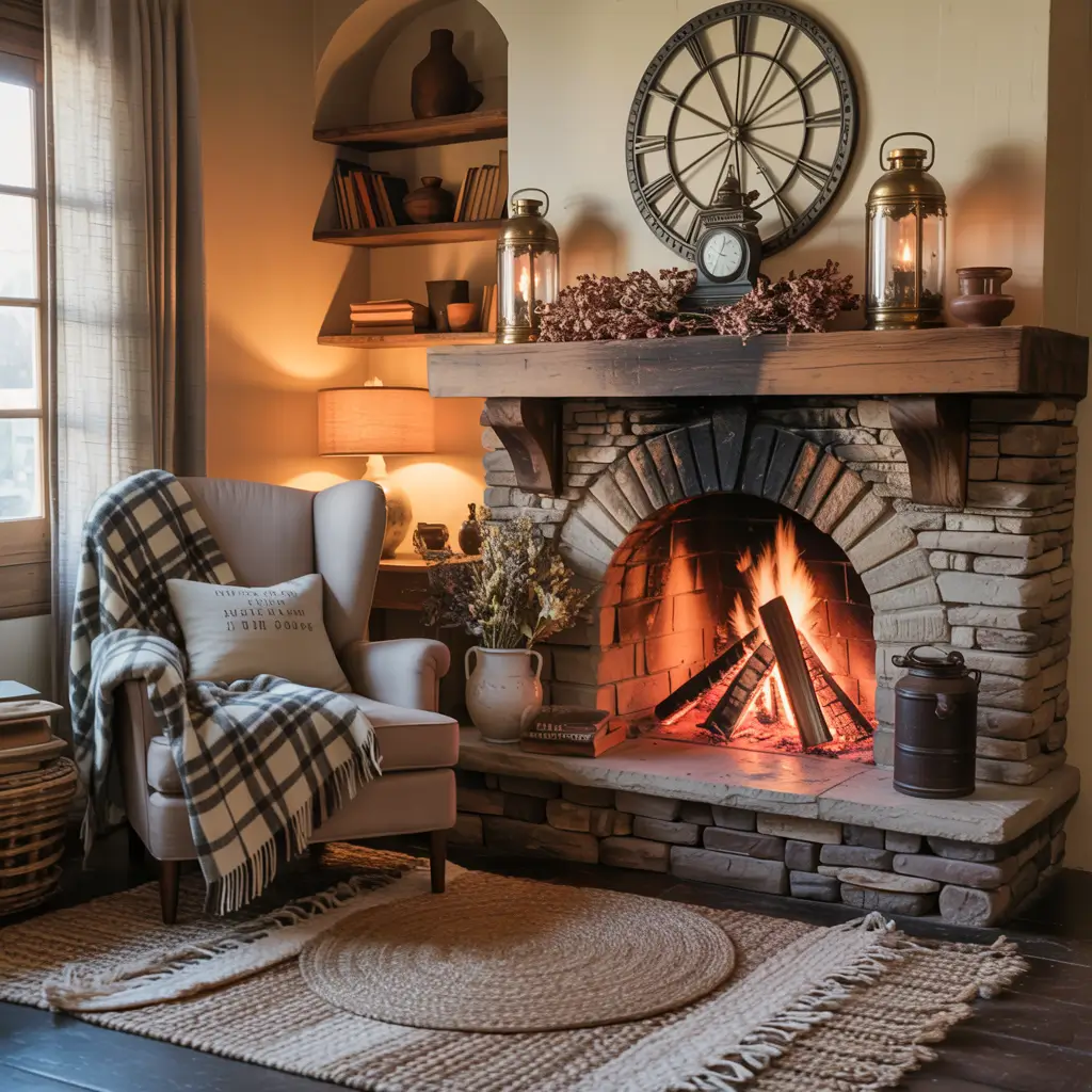 A fireplace corner becomes command central for coziness when you nail the farmhouse styling. Whether you’re working with a real fireplace, electric, or even just a mantel, this focal point sets your room’s entire mood.