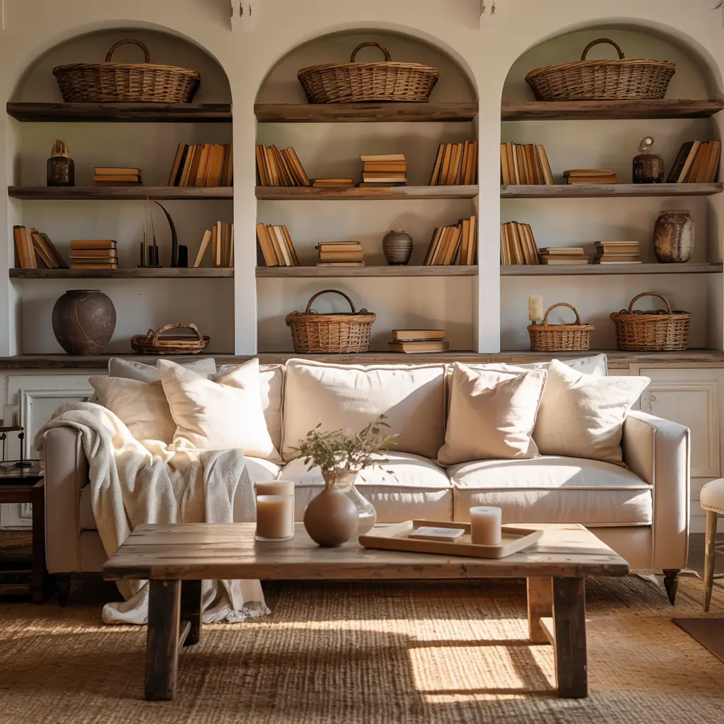 Open shelving in the living room walks a tightrope between functional and decorative. Get it right, and you’ve got storage that doubles as art. Get it wrong, and you’ve got visible clutter that makes your eye twitch.