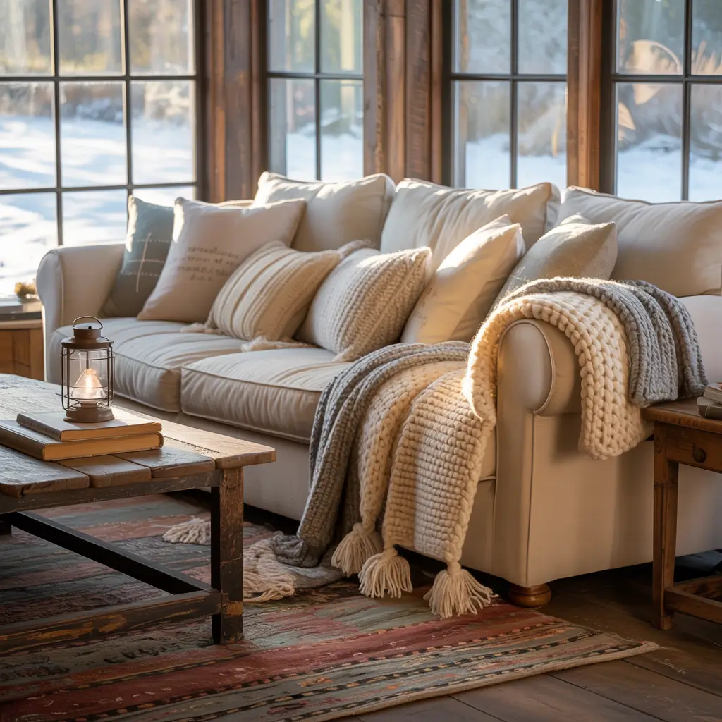 The casual drape matters more than you’d think. Perfect folding looks staged. Instead, fold roughly in thirds, then toss over furniture backs at an angle. Let one corner puddle on the seat. Add intentional wrinkles. You want “I just grabbed this because I was chilly,” not “I spent 20 minutes arranging this throw.”