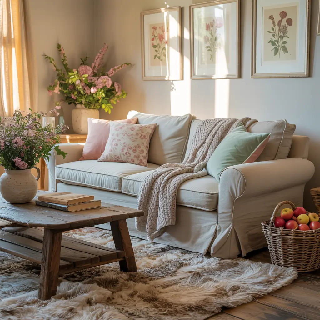The trick with pastels? They need contrast to avoid looking precious. Add something unexpected – a black metal coffee table, dark wooden beams, or leather accents. This edge keeps your pastel farmhouse from feeling like a nursery 🙂