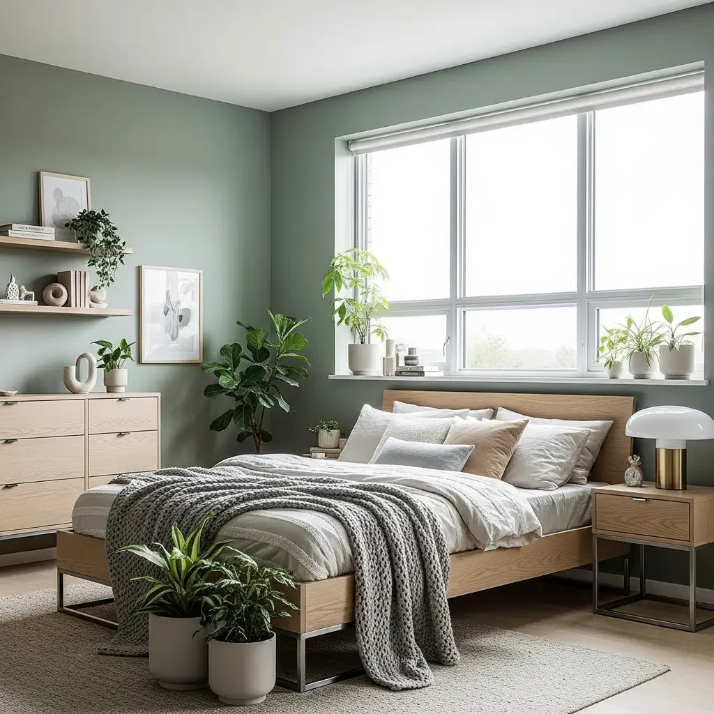 Modern Green Bedroom with Natural Elements
