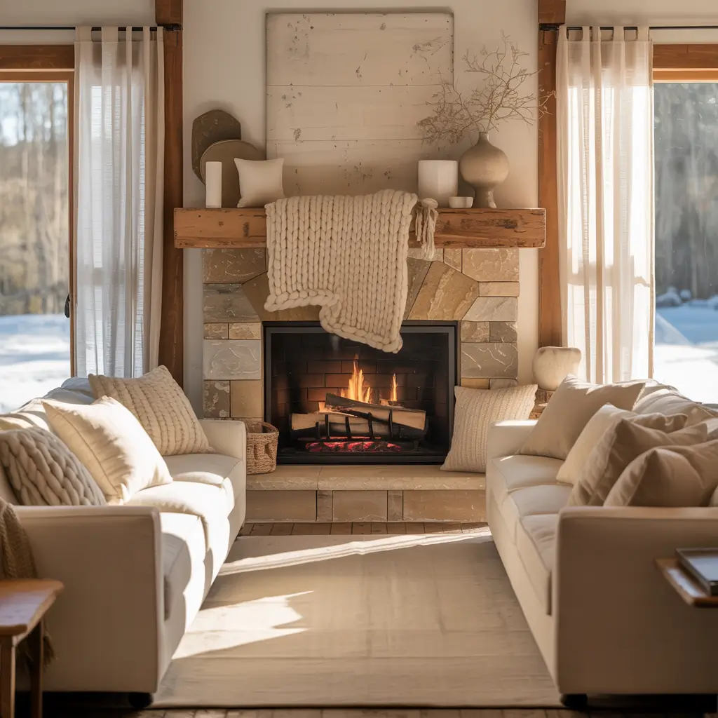 It’s about building a space that feels both current and timeless, somewhere you actually want to spend time. Start with one element that speaks to you – maybe it’s that stone fireplace or the linen sofa – and build from there.
