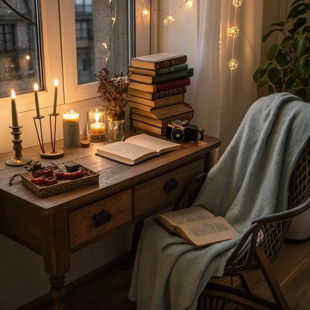 2. Candlelit Evening Study Corner