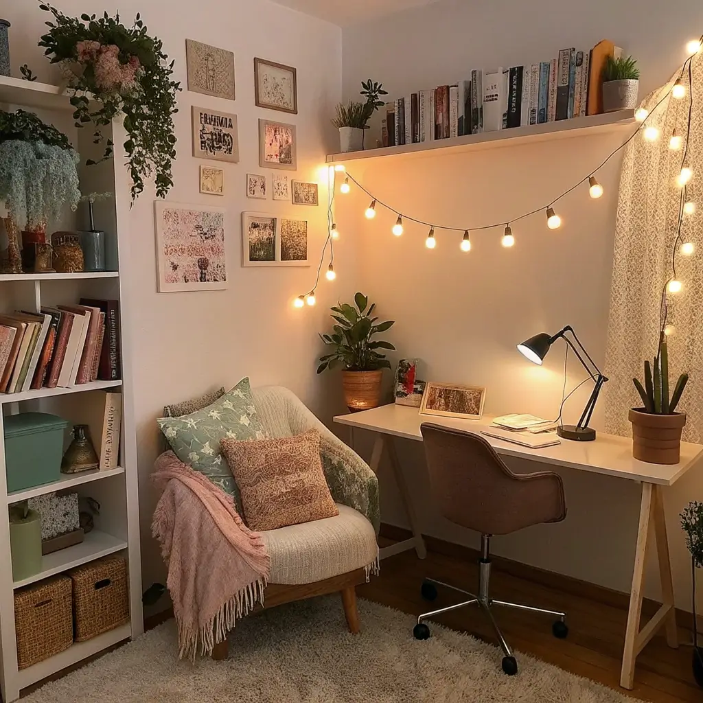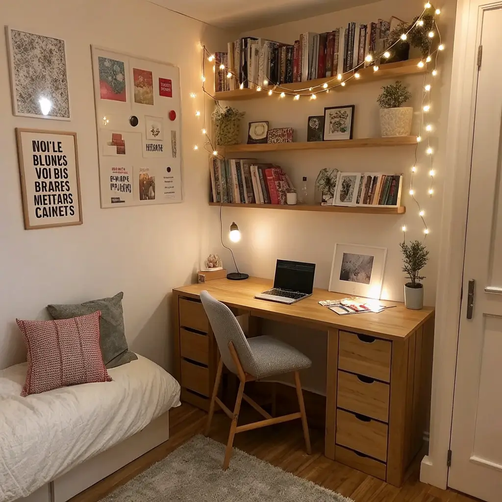 String lights aren’t just for dorm rooms or holiday decor. When used correctly, fairy lights provide a soft, ambient glow that reduces stress and makes your study room feel like a sanctuary. This is the ultimate “cozy vibes” hack, and it’s incredibly budget-friendly.