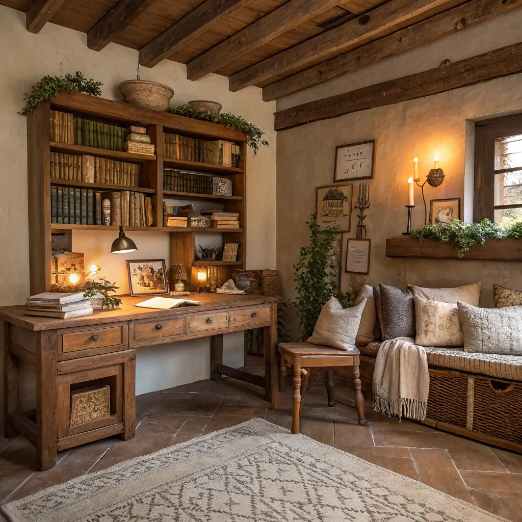 For those who crave the feeling of a cozy cabin or an old-world library, rustic wood & linen decor hits the spot. This style emphasizes durability, history, and warmth. I once helped my uncle refinish an old farmhouse table to use as a desk, and the character of that piece changed the whole room.
