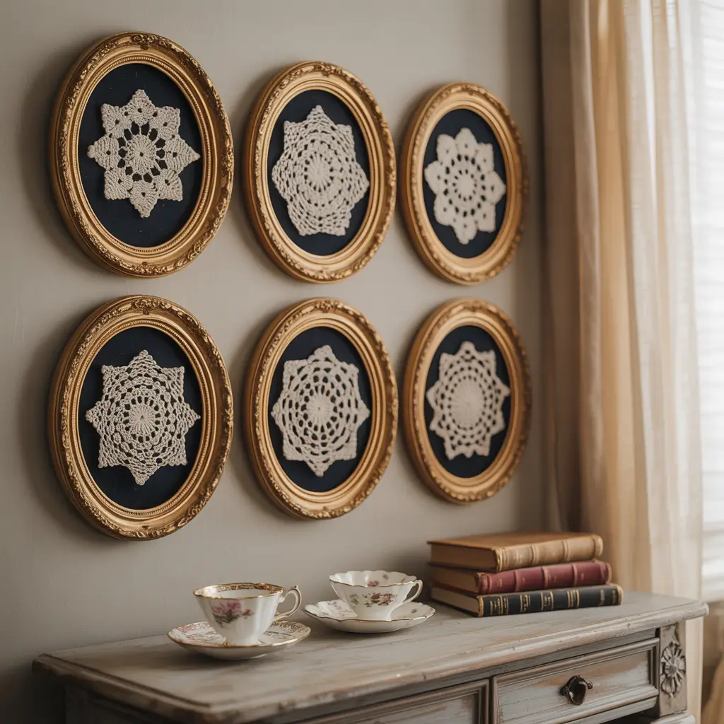 Transform ordinary frames into vintage-inspired art pieces with delicate crochet lace. This idea merges old-world charm with modern display techniques, creating unique wall decor that showcases your crochet skills.
