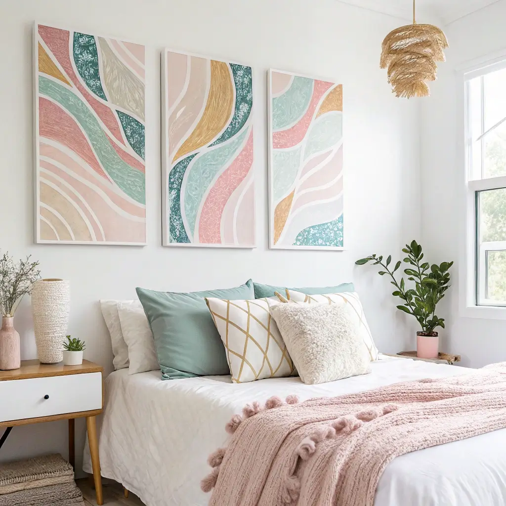 My canvas art journey involved zero traditional painting ability. Instead, I used techniques like tape resist, string art, and gluing on decorative elements. The result? Original pieces that look intentional and match my room perfectly.