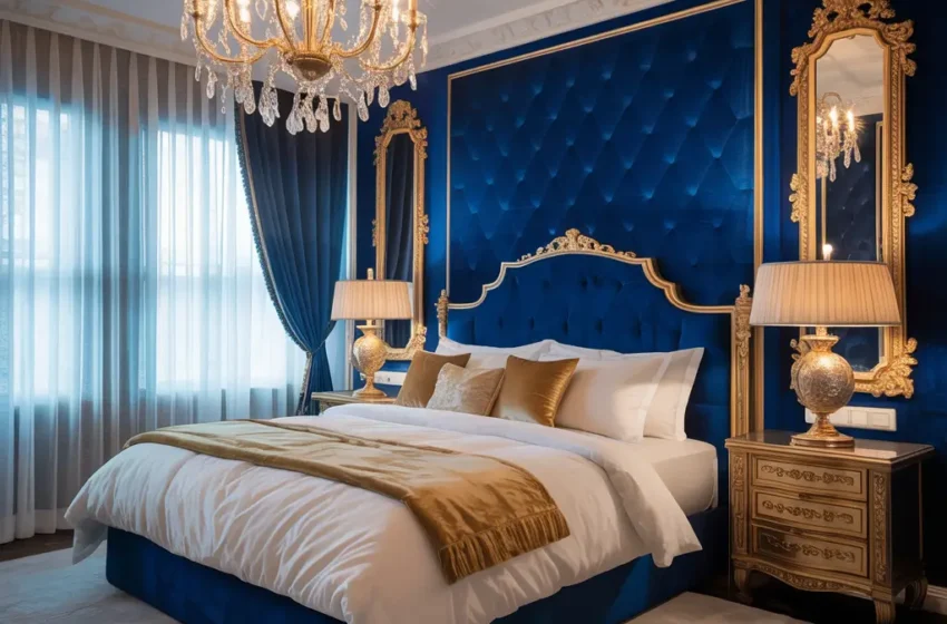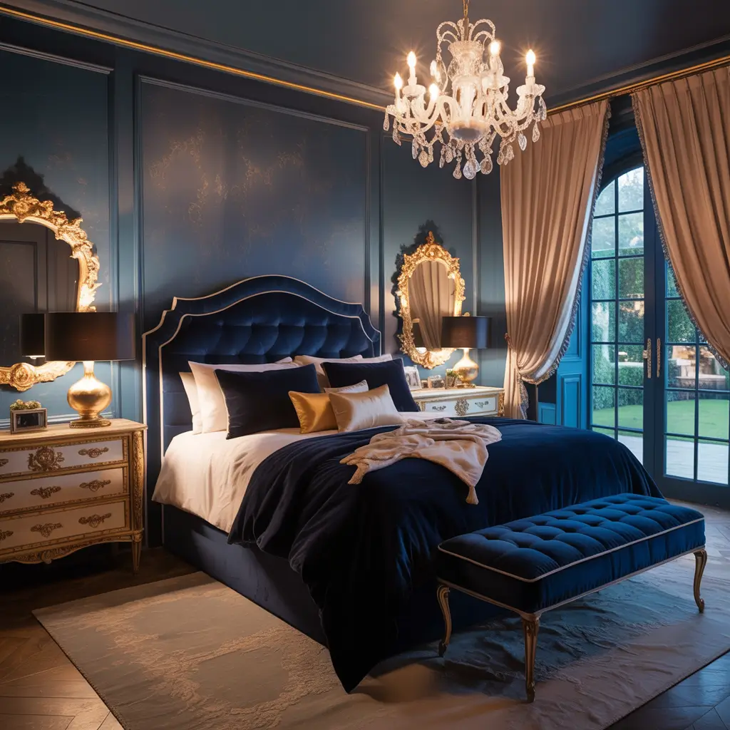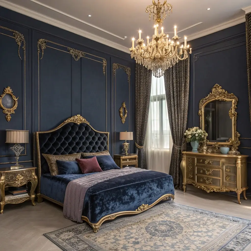 Dark Blue and Gold Luxury Bedroom