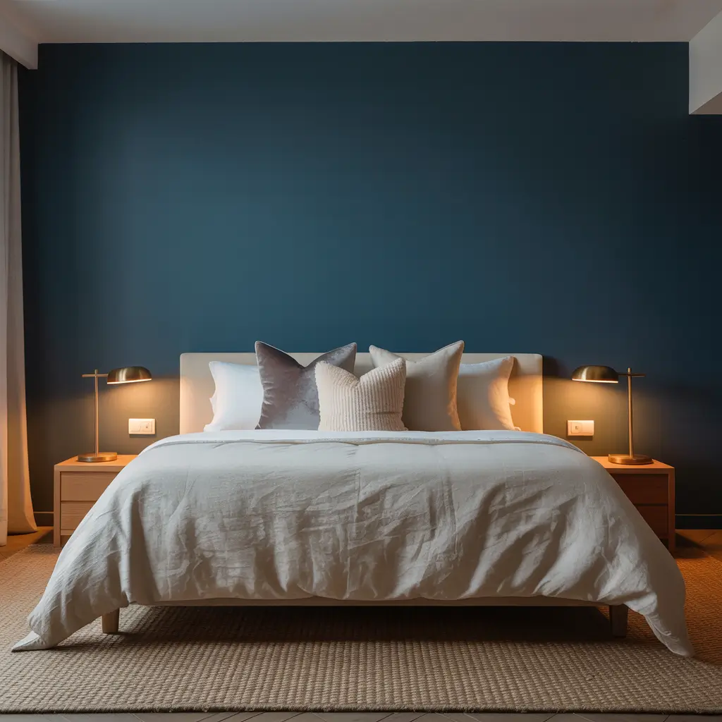 I actually started my dark blue journey with an accent wall behind the bed. It gave me the confidence to eventually go all-in on four walls. The single wall approach works particularly well in smaller bedrooms or spaces with limited natural light where full saturation might feel too intense.