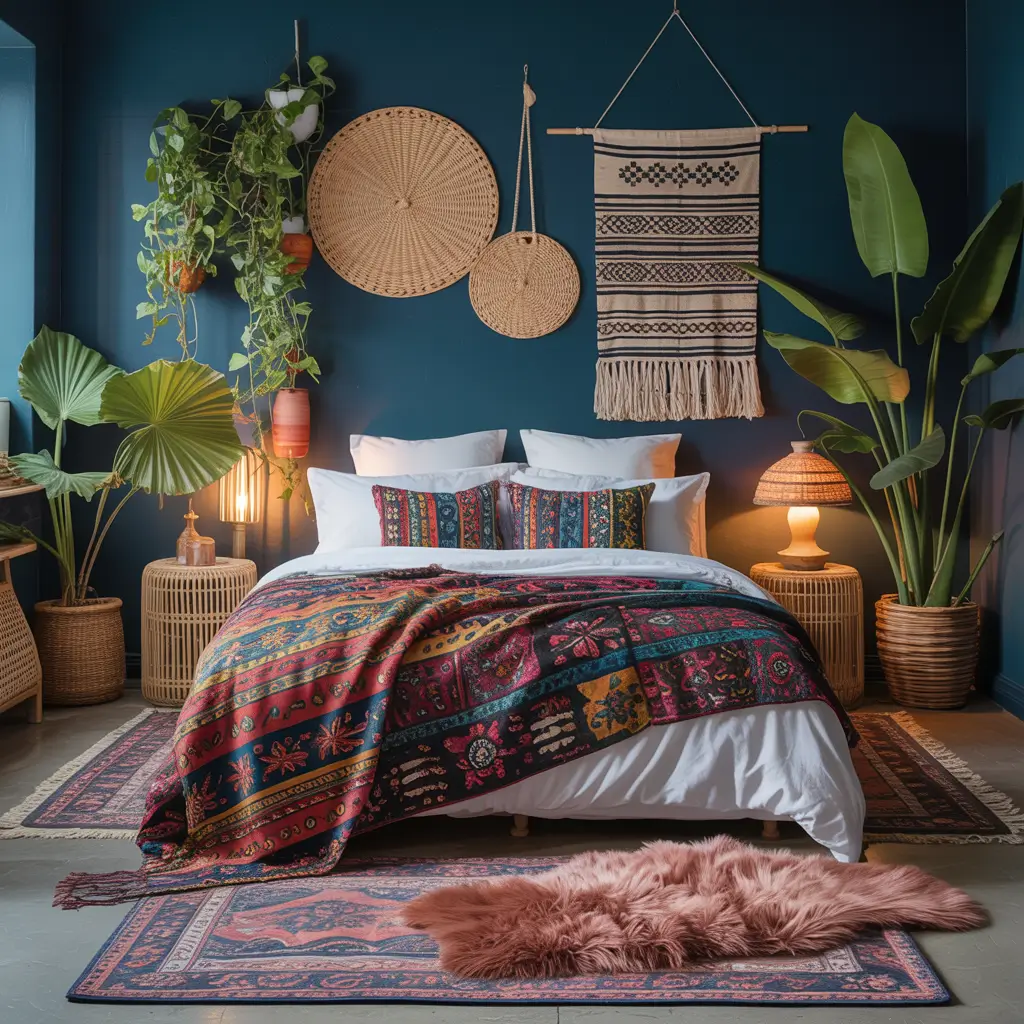 Dark Blue Boho Chic Bedroom