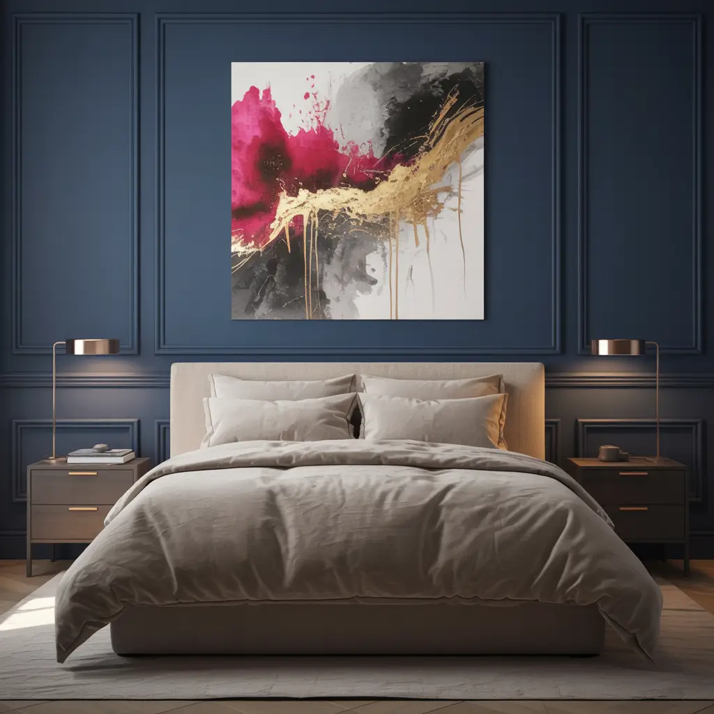 Dark Blue Bedroom with Statement Artwork