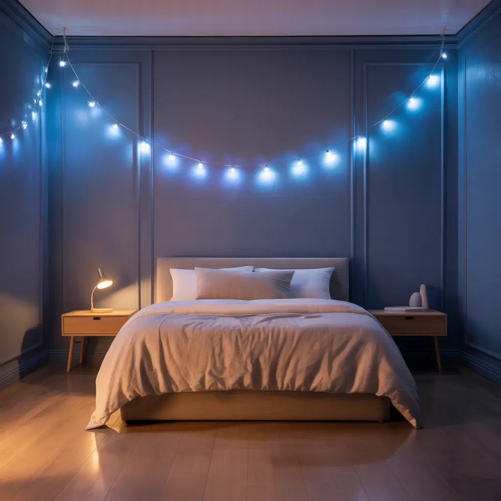 Dark Blue Bedroom with Ambient Lighting