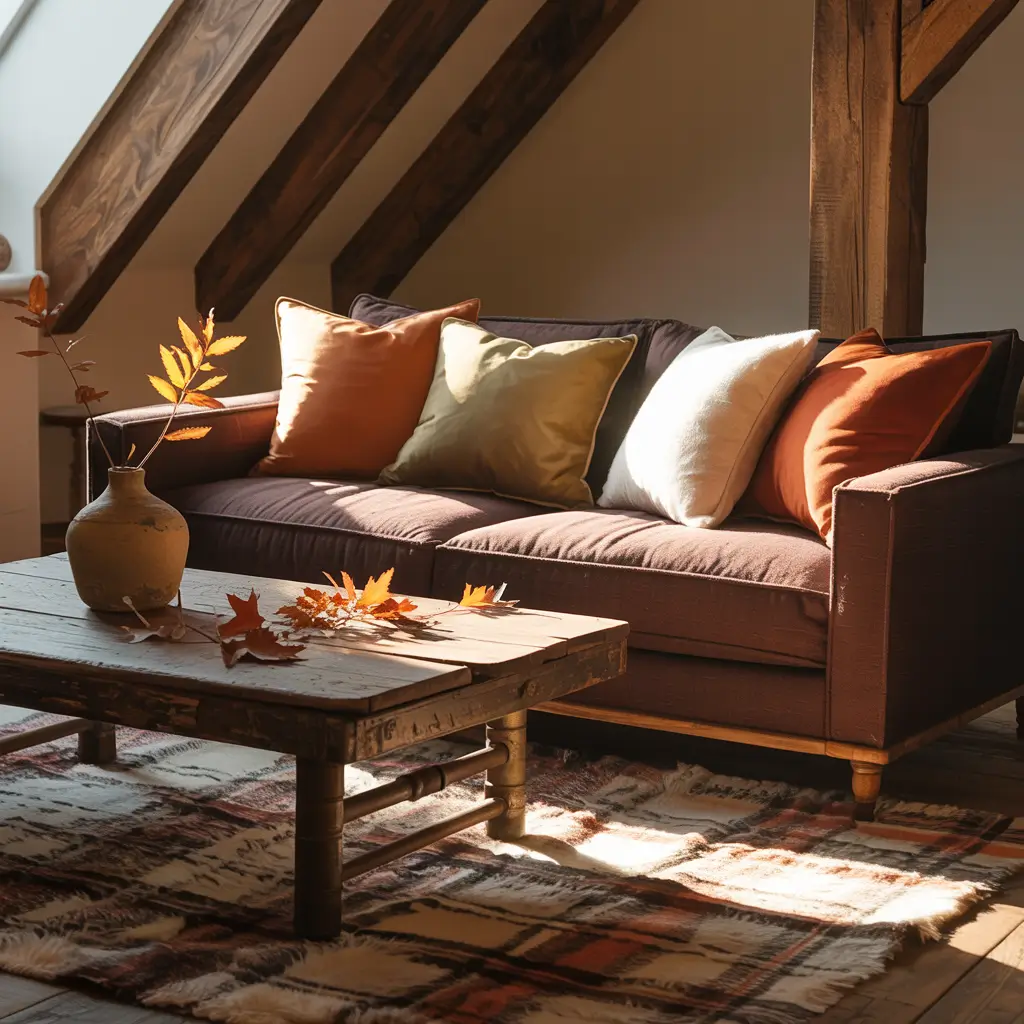 Warm Autumn Vibes with Dark Brown Couch
