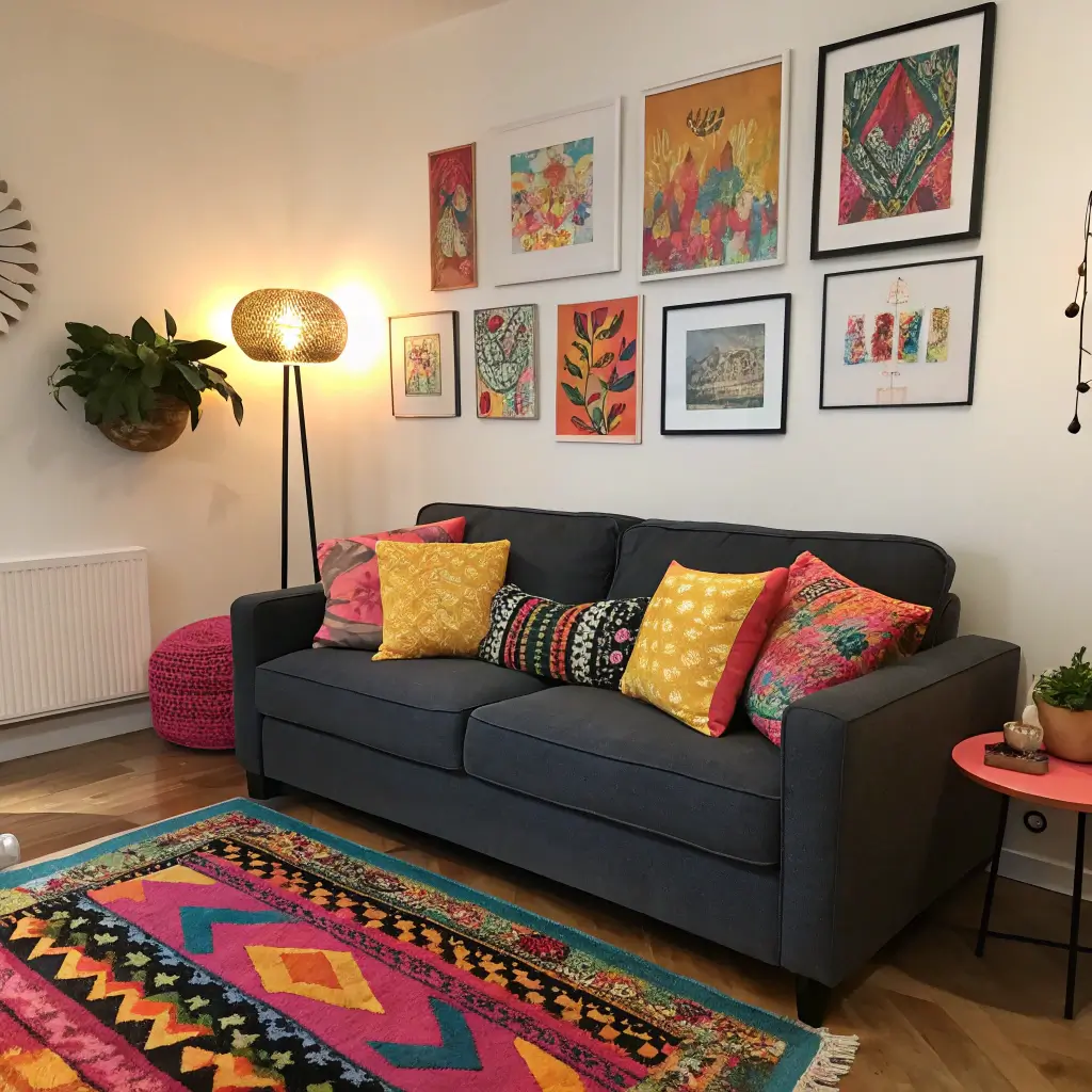 To keep the room from looking like a crayon box exploded, follow this ratio: 60% should be your neutral (couch/walls), 30% a secondary color (rug/curtains), and 10% should be your “pop” (pillows/art). If you have a dark gray couch, keep the bold color limited to small, impactful items. This way, if you decide you hate teal next month, you only have to swap out $50 worth of pillows instead of buying a new $2,000 sofa. Smart, right? 🙂