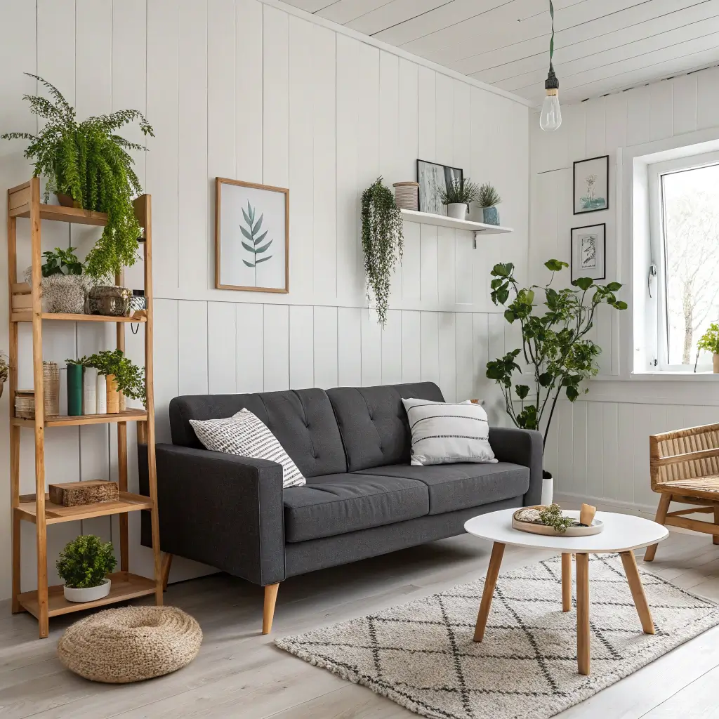 The classic Scandi palette is white, black, gray, and “blonde” wood (like ash or pine).