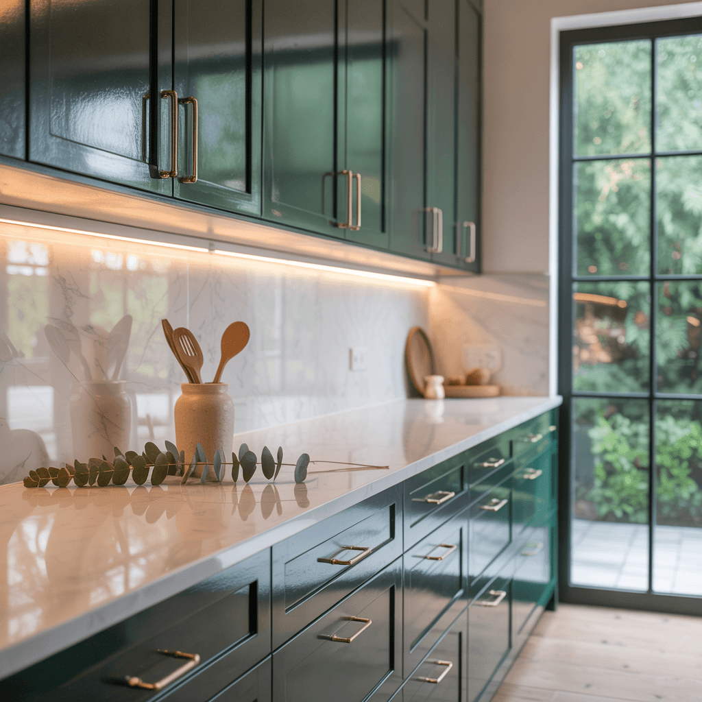 I learned this the hard way when I first painted my cabinets. Under my old LED bulbs, the green looked almost gray. Switched to warm white bulbs (around 2700K), and suddenly my kitchen looked like it belonged in a design magazine. The warm light brings out the richness in the green and creates this cozy, inviting atmosphere.