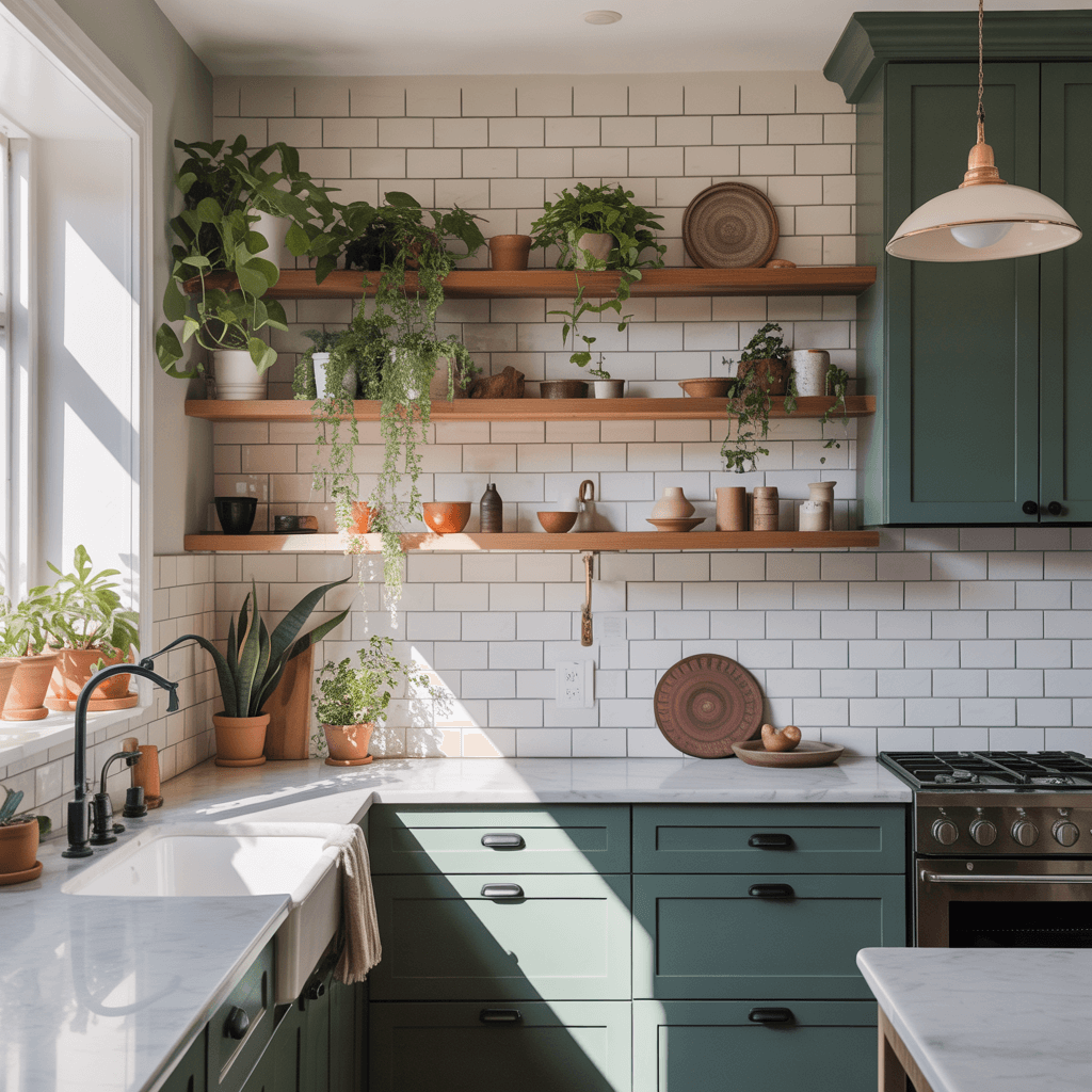 When you pair dark green cabinets with a white marble backsplash, you get this classic, timeless look that’ll still look amazing in 20 years. But here’s where it gets interesting – if you’re feeling adventurous, try green-veined marble. The way those natural green veins echo your cabinet color? Absolutely genius.