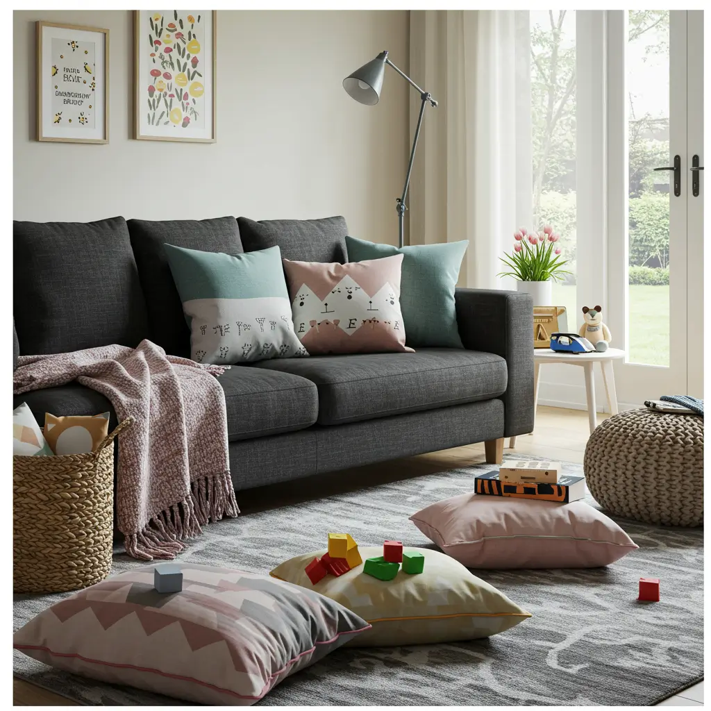 I’ve watched friends with white couches live in constant anxiety. Meanwhile, my dark grey sectional has survived toddler art projects, dog muddy paws, and countless snack accidents without looking worse for wear. 🙂