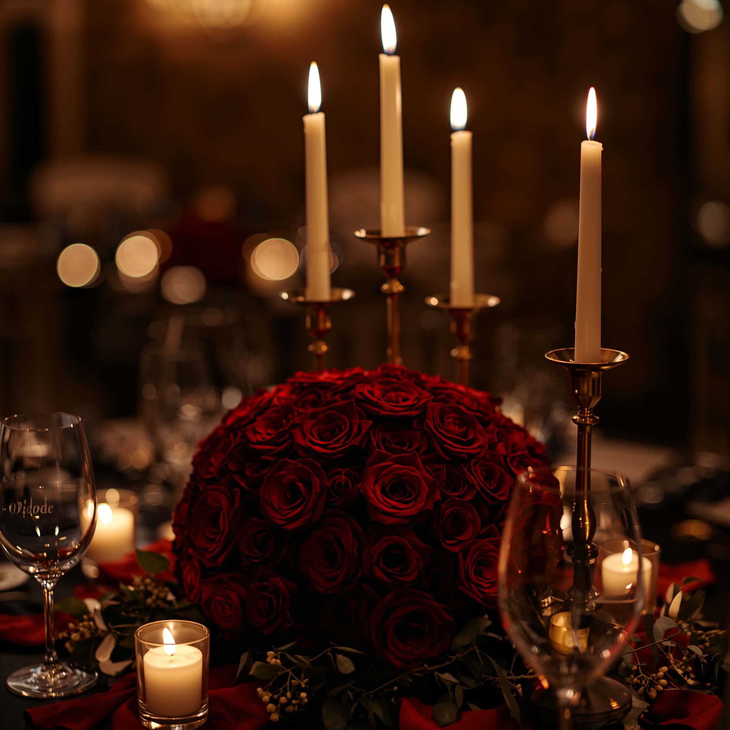 There’s something about deep red flowers and candlelight that just screams romance, isn’t there? Maybe it’s because red is the universal color of passion, or maybe it’s because candlelight makes everything look like a Renaissance painting, but this combination never fails to create an atmosphere that’s both intimate and dramatic.