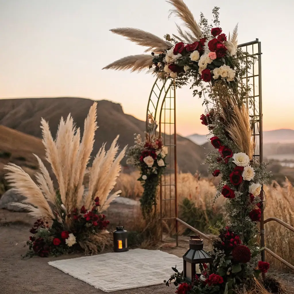 • Height variation: Use tall pampas stems with shorter rose arrangements