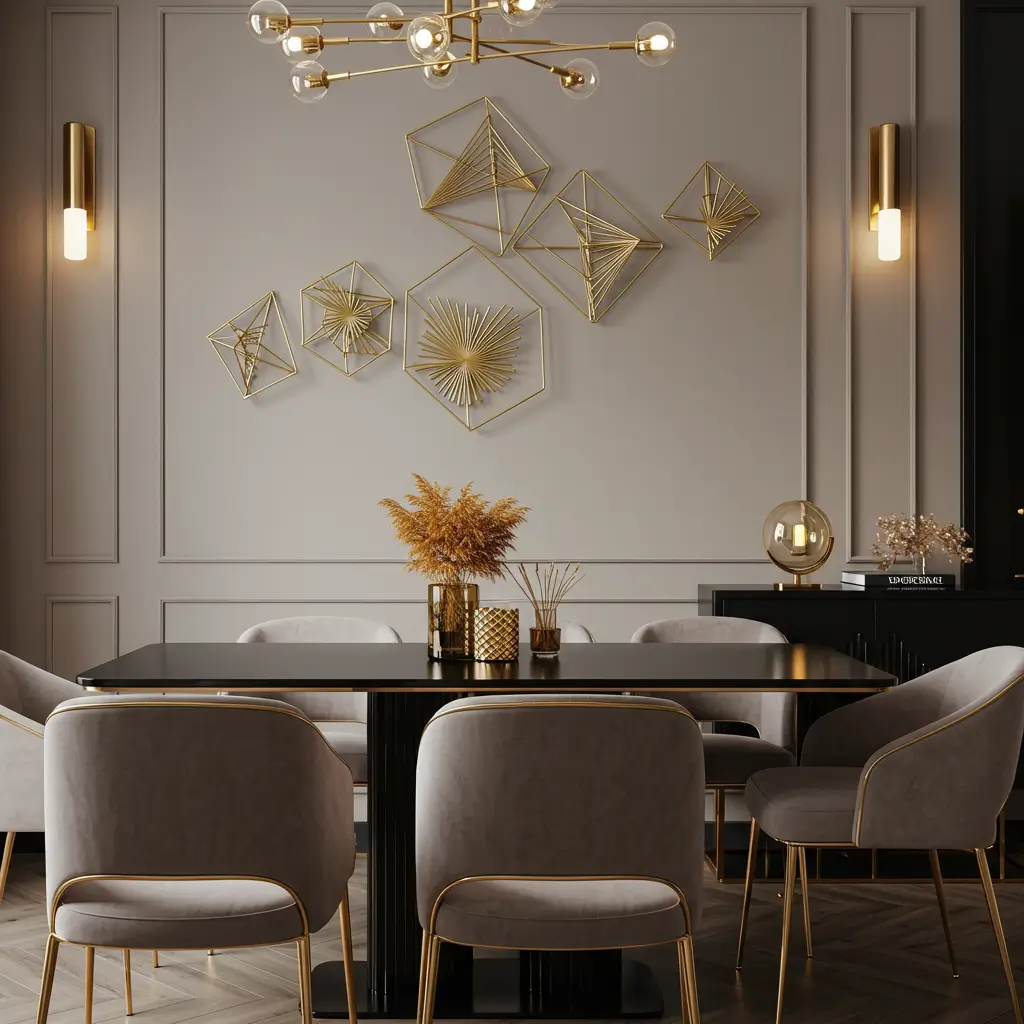 Metal sculptures give dining rooms that gallery feel without gallery prices. One well-chosen piece can define your entire room’s aesthetic.