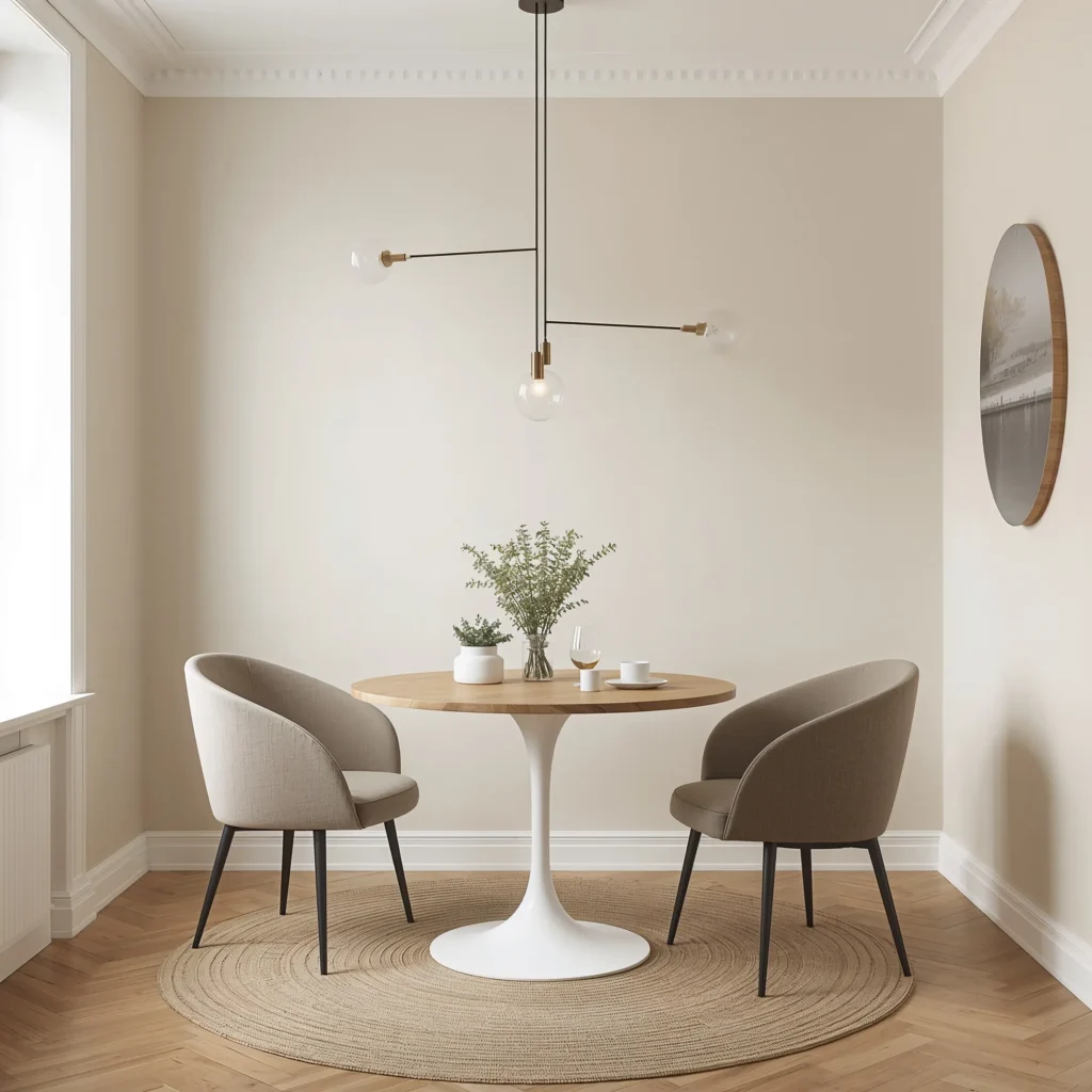 I learned this lesson the hard way after hanging a massive chandelier in my first apartment’s dining nook. It looked like a UFO had landed on my table. Now I swear by the rule of thirds: your light fixture should be about one-third the width of your dining table. For round tables under 48 inches, a single statement pendant works beautifully.