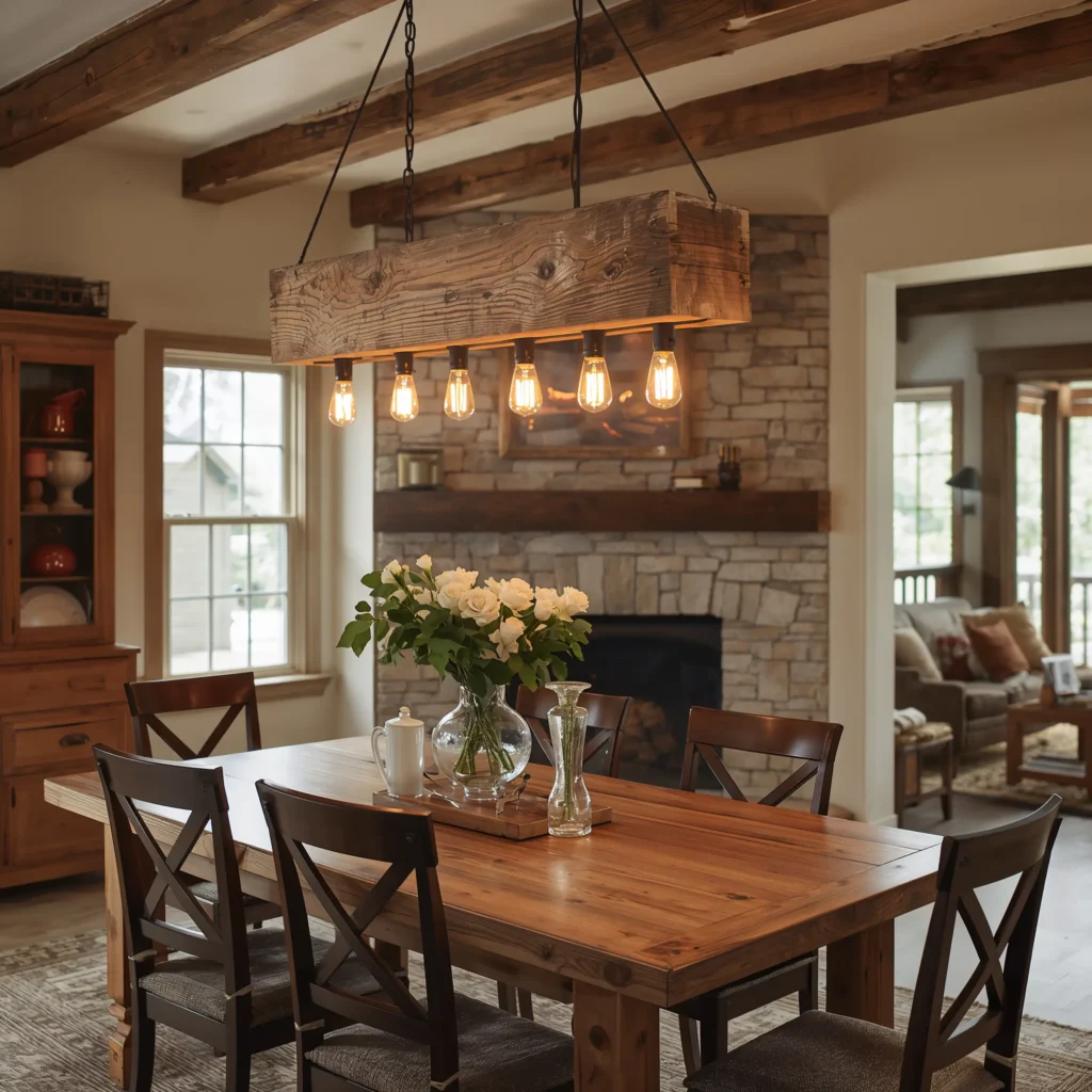 Just watch out for the weight factor. Real wood beam fixtures can be seriously heavy, so professional installation might be worth it. Nobody wants their romantic dinner interrupted by a ceiling fixture crash landing in the mashed potatoes.