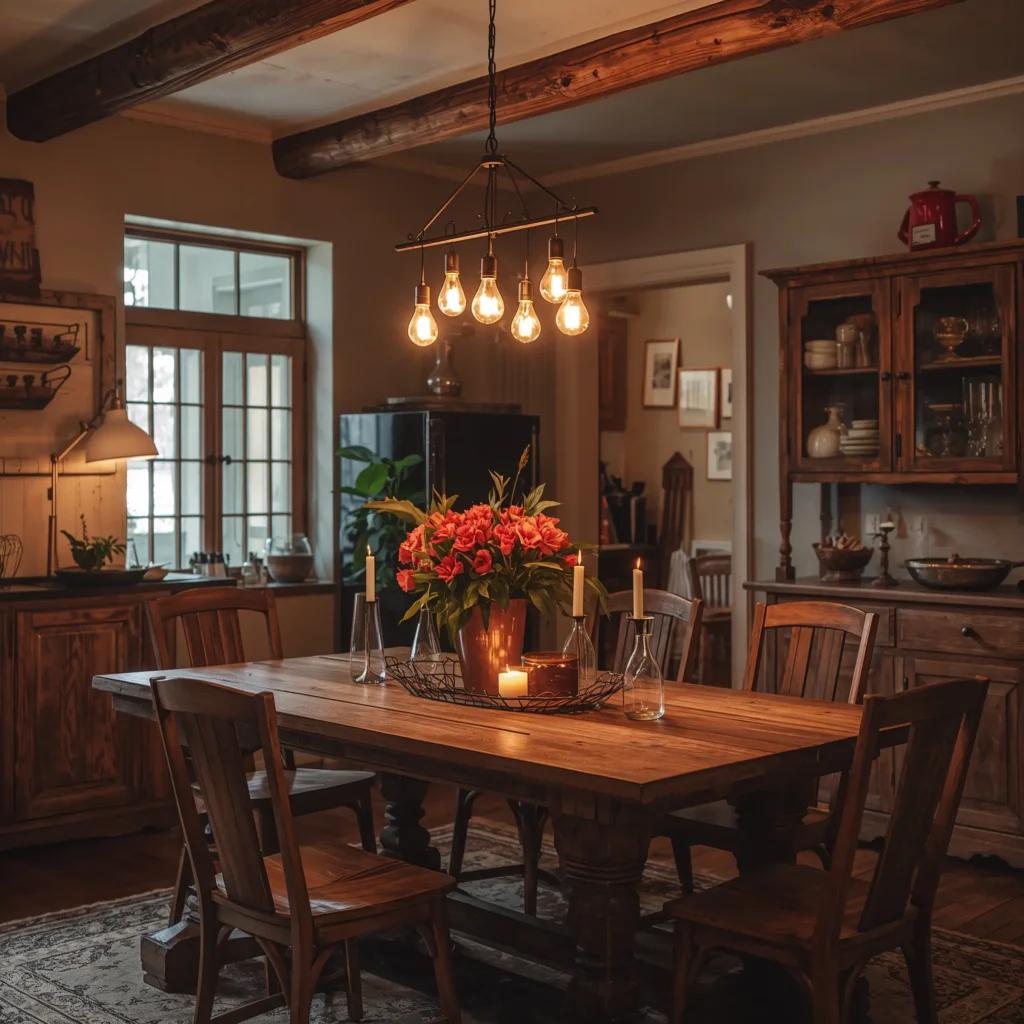 Ah, farmhouse chandeliers—Joanna Gaines really did a number on us all, didn’t she? But here’s the thing: when done right, these fixtures bring incredible warmth and character to a dining space. I’m talking about those gorgeous wood and metal combinations, wagon wheel designs, or the classic candelabra-style fixtures with Edison bulbs.