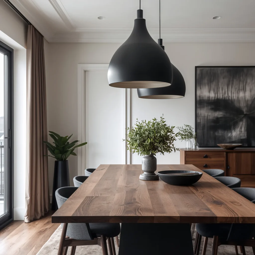 Black matte fixtures are the little black dress of dining room lighting—classic, versatile, and always in style. This finish works with literally any color scheme and adds instant sophistication without trying too hard.