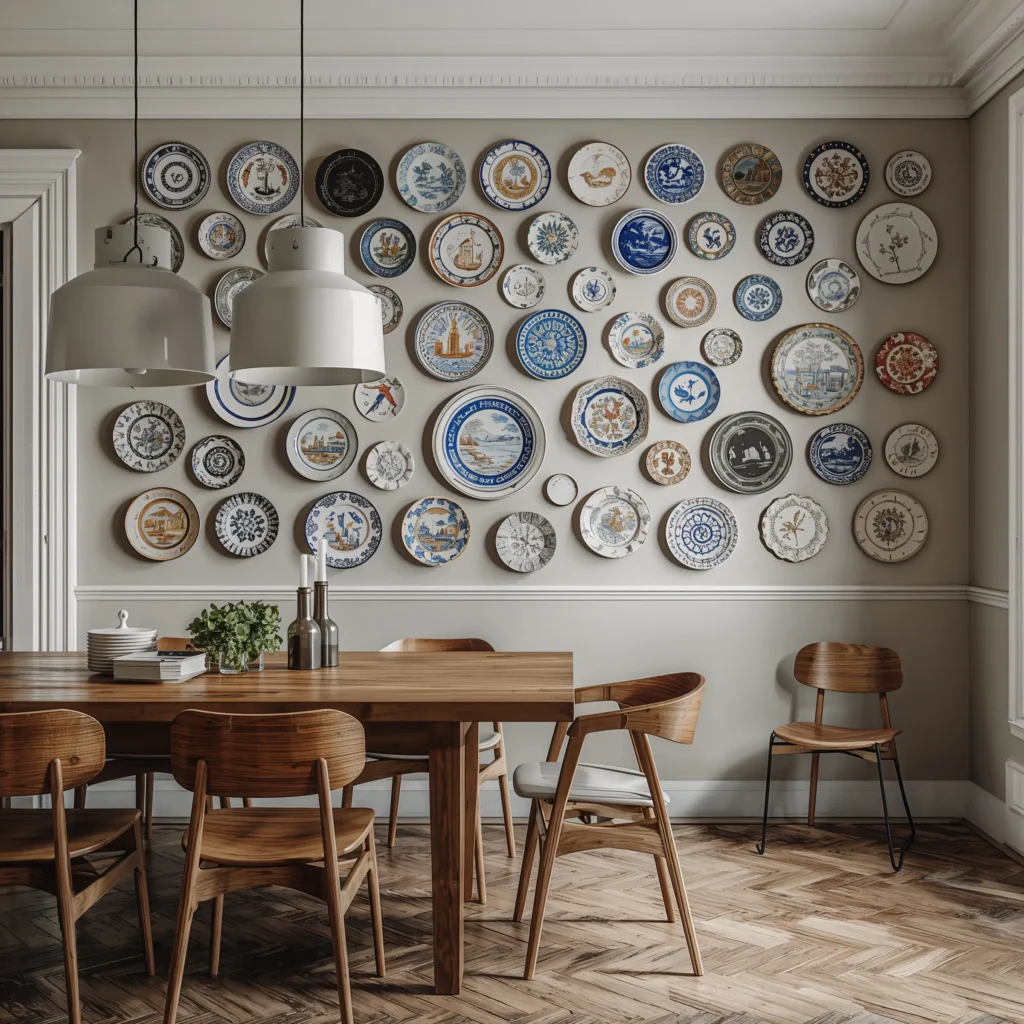 Here’s where things get fun and a little quirky. Remember those plates your grandma collected? Or those random beautiful ones you keep buying at flea markets? Time to get them out of the cabinet and onto the wall!