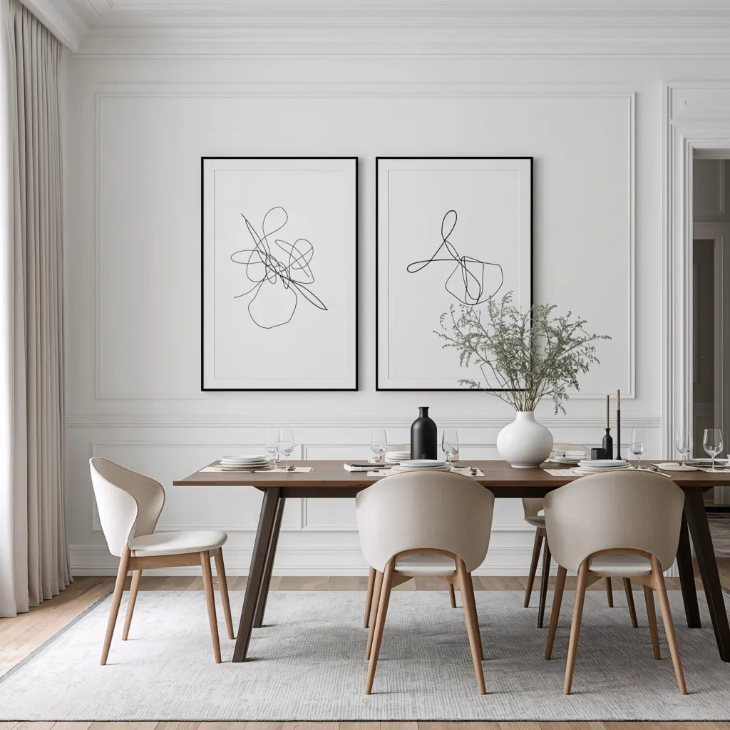 Sometimes less really is more. Minimalist line art has this way of being both simple and sophisticated – perfect for dining rooms where you want art that doesn’t compete with conversation.