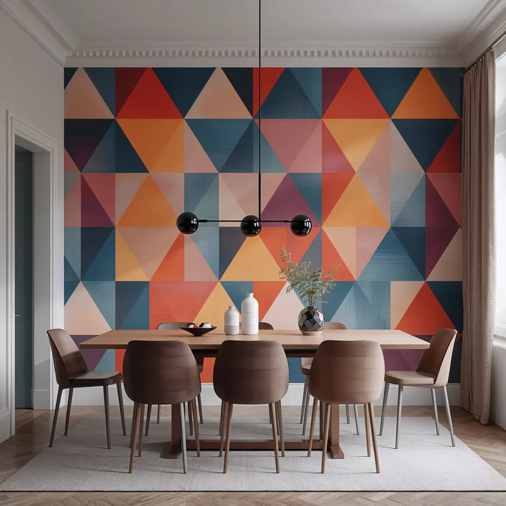 Want to know what instantly makes a dining room look expensive? Geometric wallpaper. I’m talking about those sharp angles, repeating shapes, and patterns that make your eyes dance around the room.