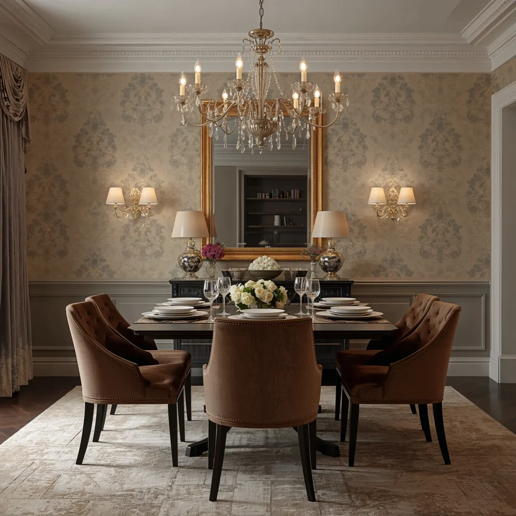 Want your dining room to literally shine? Metallic wallpaper reflects light in ways that make every dinner feel like a special occasion. I’m not suggesting you turn your dining room into a disco ball, but strategic metallic accents create this gorgeous glow that flatters everyone at the table.