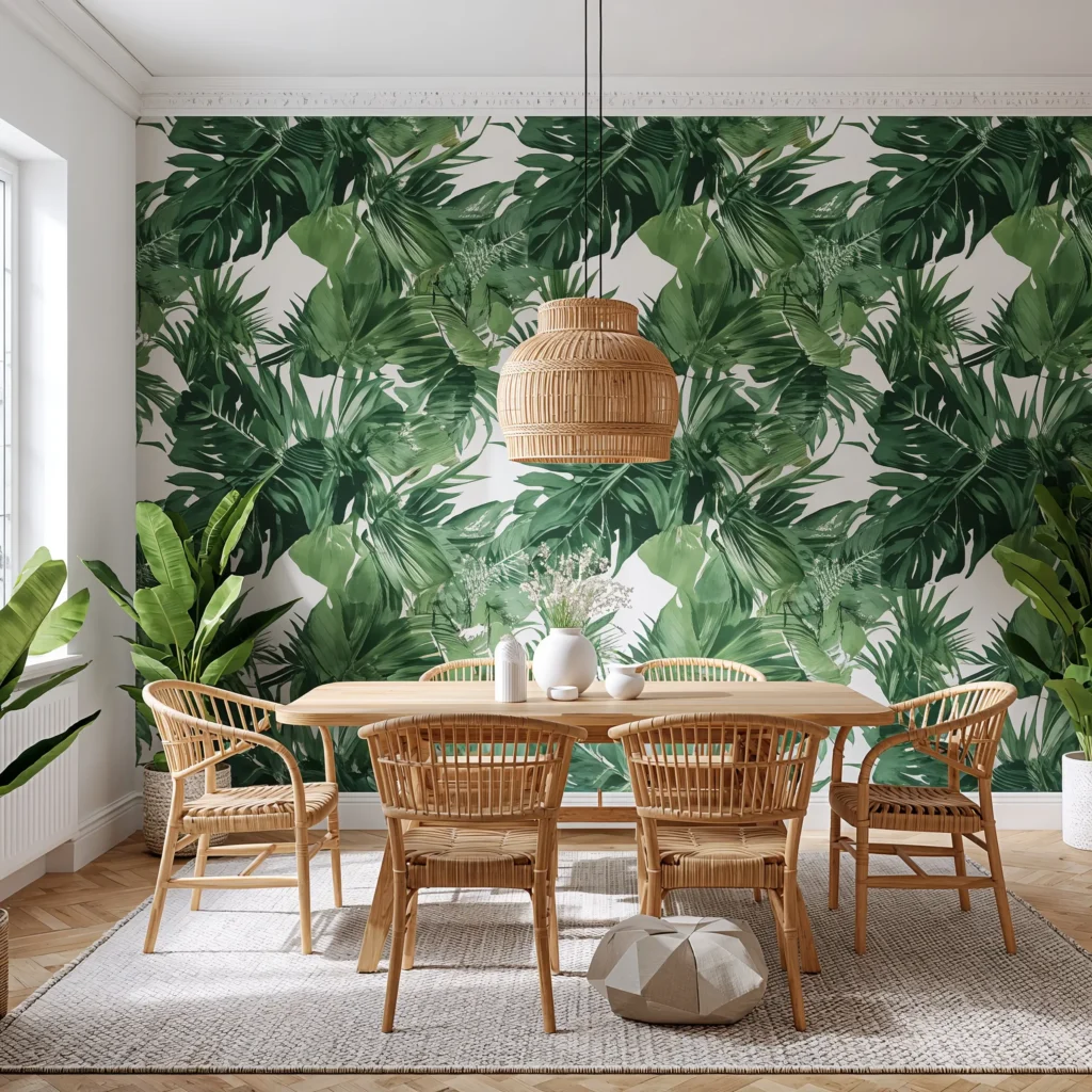 Bringing the jungle indoors never goes out of style, apparently. Tropical wallpaper transforms your dining room into an exotic escape where every meal feels like a vacation. And no, you don’t need to live in Miami to pull this off.