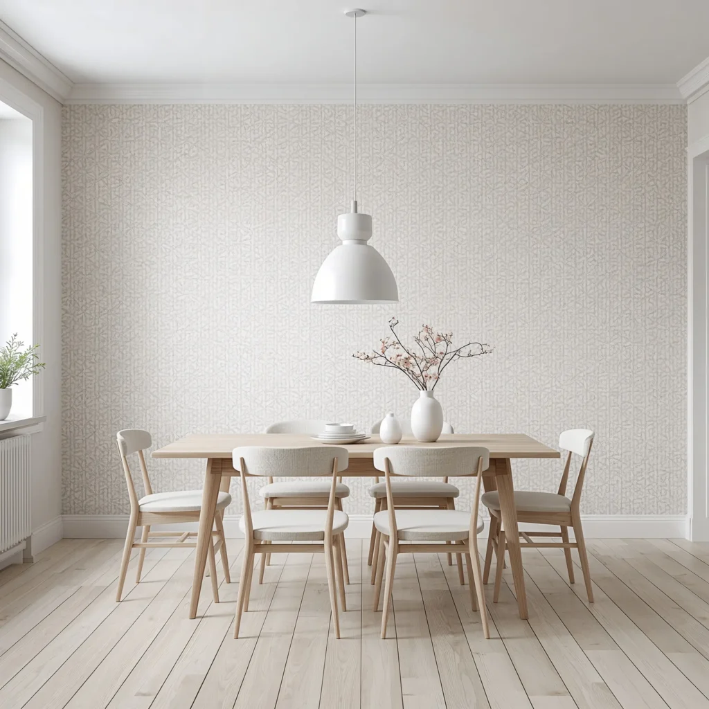 Scandinavian wallpaper brings that coveted Nordic cool to your dining space. We’re talking subtle patterns, muted colors, and designs that whisper rather than shout. Perfect if you’re into that whole “less but better” philosophy.