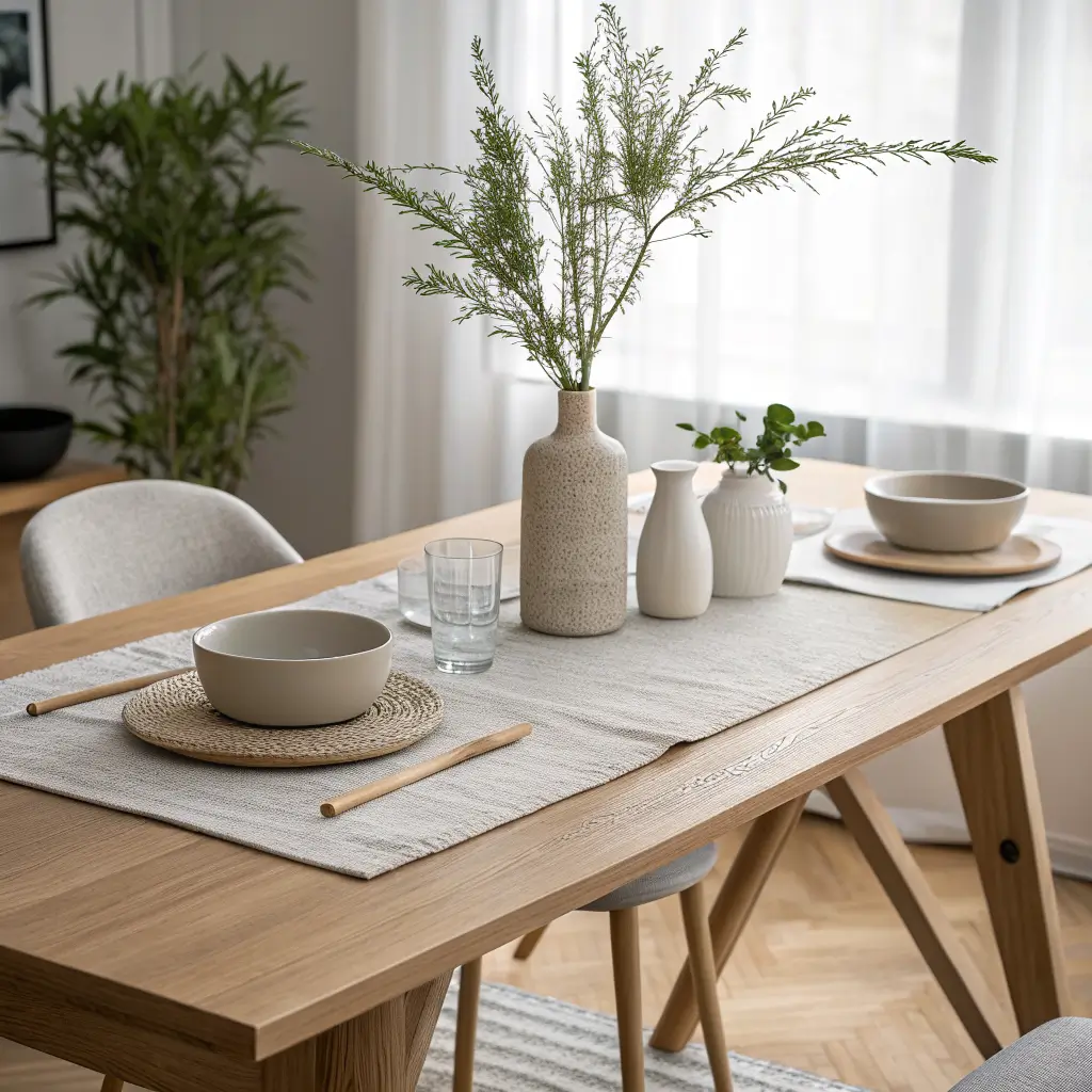 I keep my dining table minimal with just three elements: a single branch in a clear vase, a slim linen runner, and two pillar candles. That’s it. Guests always comment on how calming the space feels.