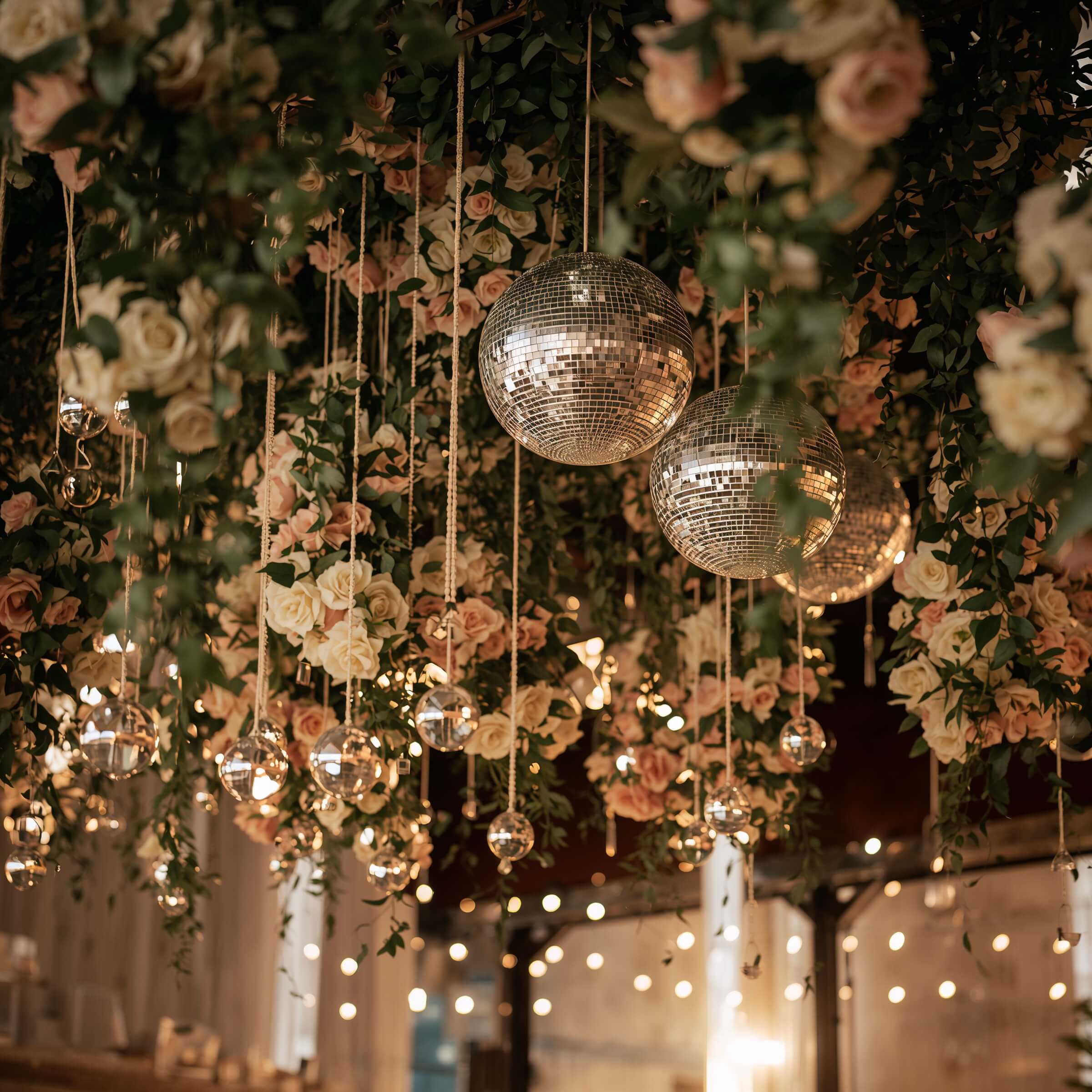 Pro tip from someone who learned the hard way: make sure your venue can handle the weight. Those disco balls might look light and airy, but add some hefty floral arrangements, and you’re looking at some serious ceiling stress. Always check with your venue coordinator first—trust me on this one 🙂