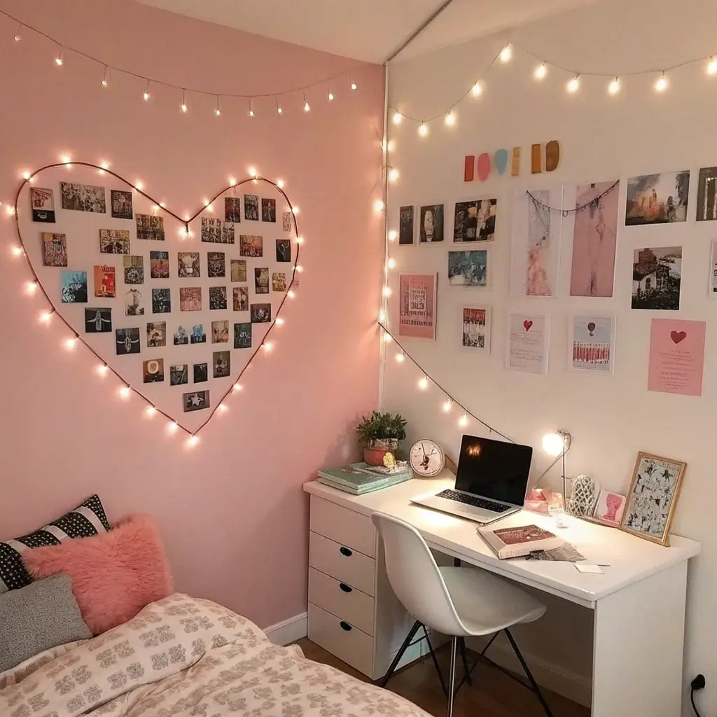 I installed this setup above my desk last year, and honestly? It changed the entire vibe of my room. The floating shelves cost me $25 from IKEA, the fairy lights were $15 on Amazon, and suddenly my workspace went from “depression corner” to “creative sanctuary.” Now I actually want to sit at my desk instead of working from bed.