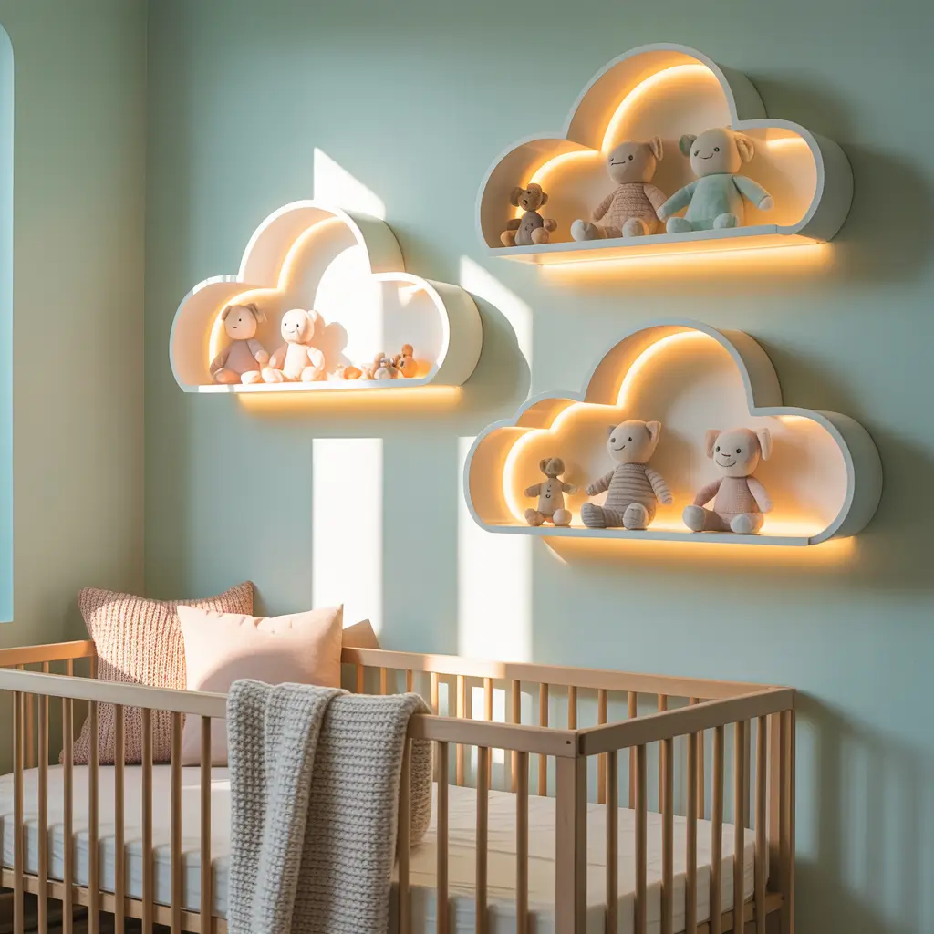 Clouds are basically the universal symbol of sweet baby dreams, right? Creating floating cloud shelves takes that dreamy vibe and makes it functional. These aren’t just decorative—they actually hold your baby essentials while looking absolutely adorable. Win-win situation if you ask me.