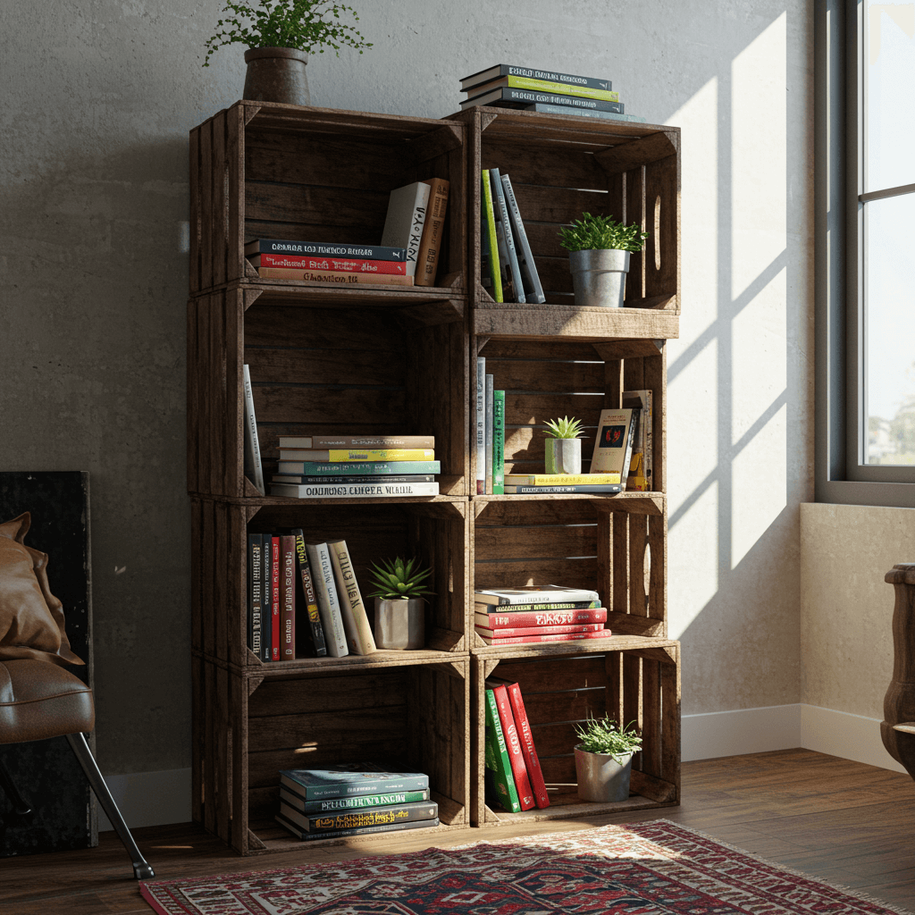 I recommend sourcing old wooden wine or apple crates from flea markets or antique stores. You can stack them in various configurations to create a modular, rustic shelving unit. I once built a 6-foot-tall bookshelf using six old crates, and it cost me a grand total of $30.
